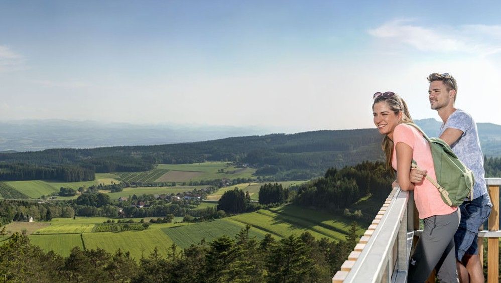 Auf verschiedenen Aussichtsplateaus werden die Gäste an klaren Tagen mit einem Rundumblick verwöhnt, der bis zu den Grafenschlager Windrädern reicht und vom Rax-Schneeberg bis Haller Mauern ein Voralpenpanorama mit einer Länge von ca. 250 km bietet.