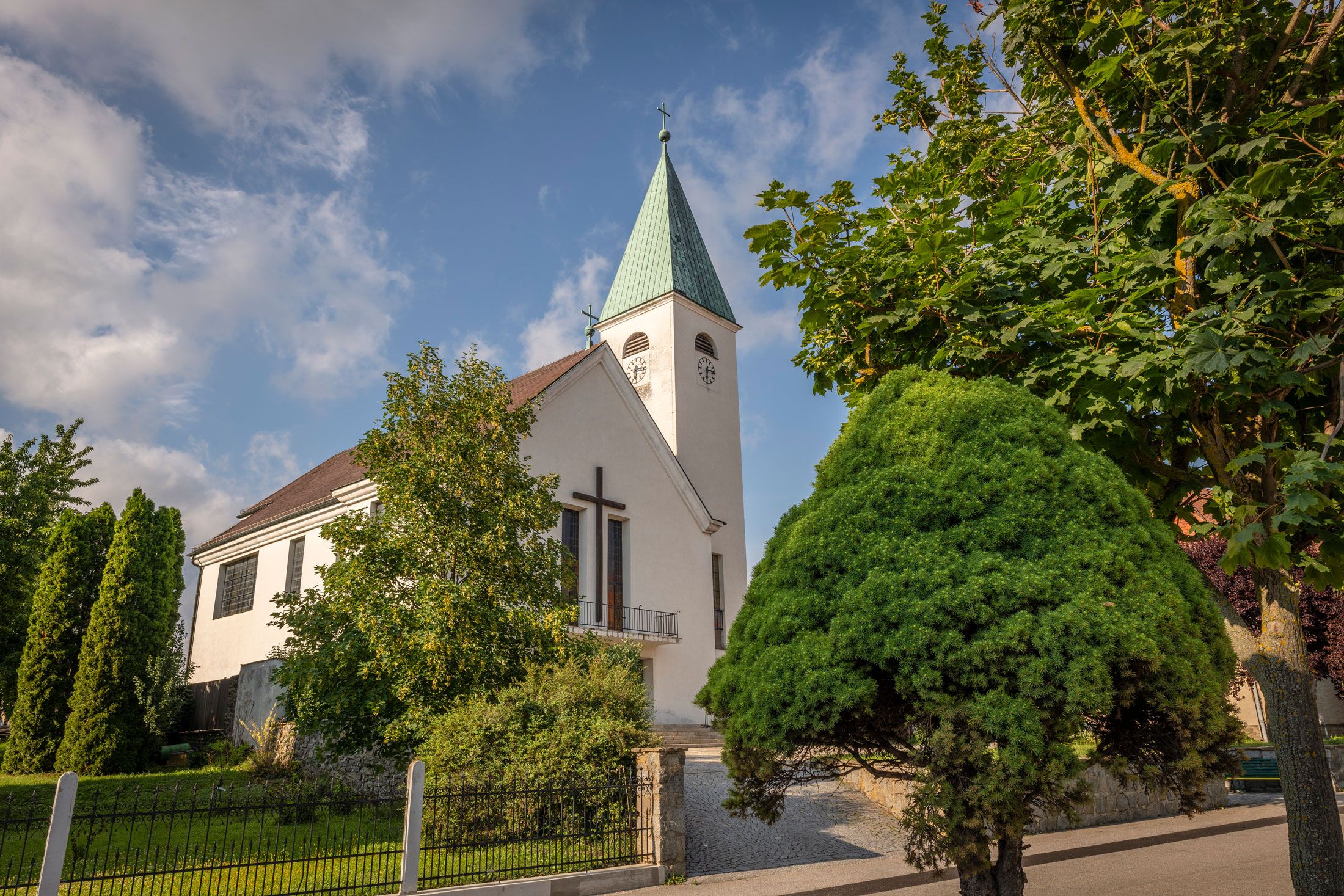 Die dem Patrozinium hl. Christophorus geweihte Kirche wurde 1936/1937 nach den Plänen des Architekten Rudolf Wondracek erbaut. Jährlich findet hier eine Kraftfahrzeugsegnung statt.