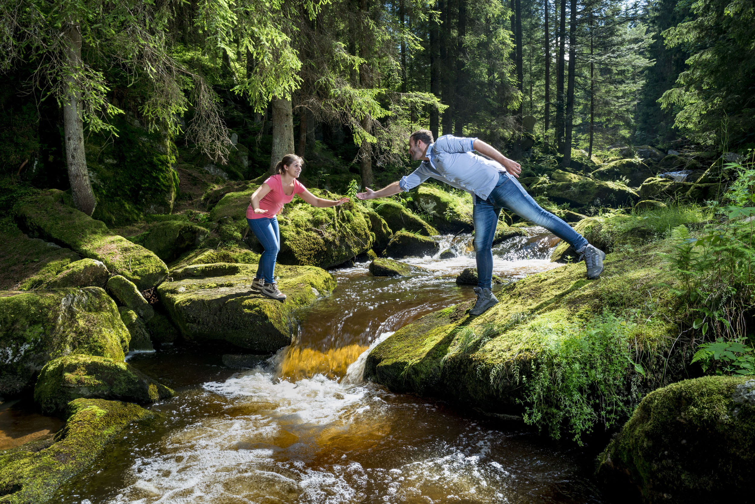 Geografische Namen haben oft eine Bedeutung – warum der Höllfall seinen Namen trägt, bleibt jedoch rätselhaft. Die sattgrüne Landschaft mit moosbewachsenen Granitblöcken und zahlreichen kleinen Wasserfällen ist viel zu schön, um finster zu wirken. Am besten erreicht man den Höllfall zu Fuß über Arbesbach oder entlang des Bärentrails.