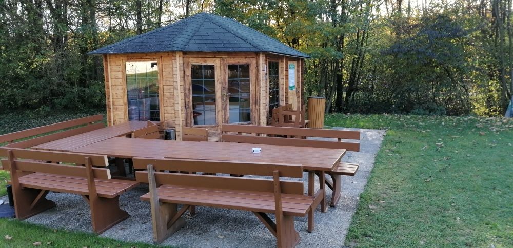 - Ebenso besteht die Möglichkeit einer "Radlerrast" mit Getränkeautomat und Grillmöglichkeit