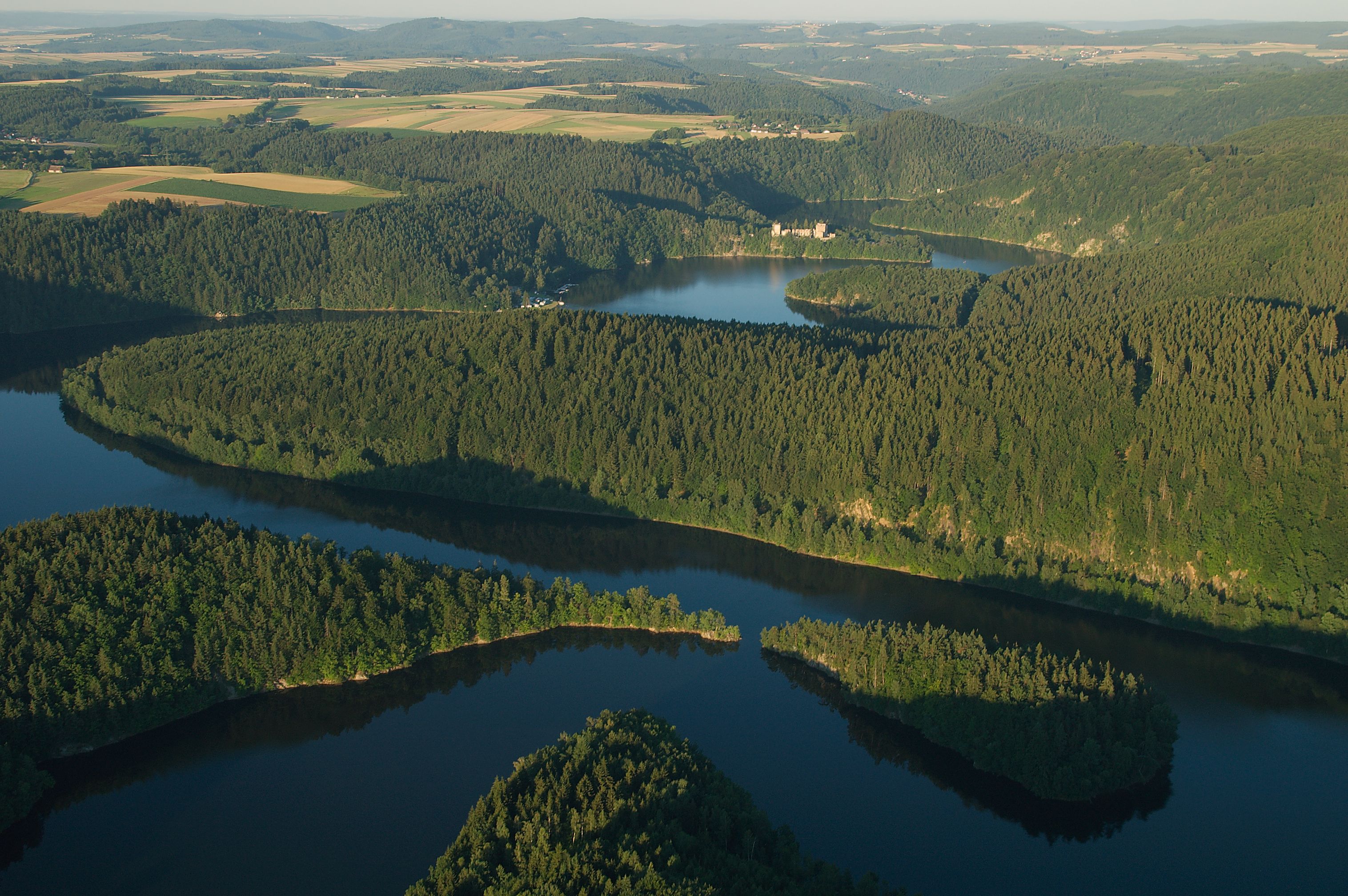 Der nach der gleichnamigen Ruine benannte Stausee Dobra beginnt direkt unterhalb der Staumauer des Ottensteiner Stausees und erstreckt sich über eine Länge von ca. 5 km bis nach Krumau.