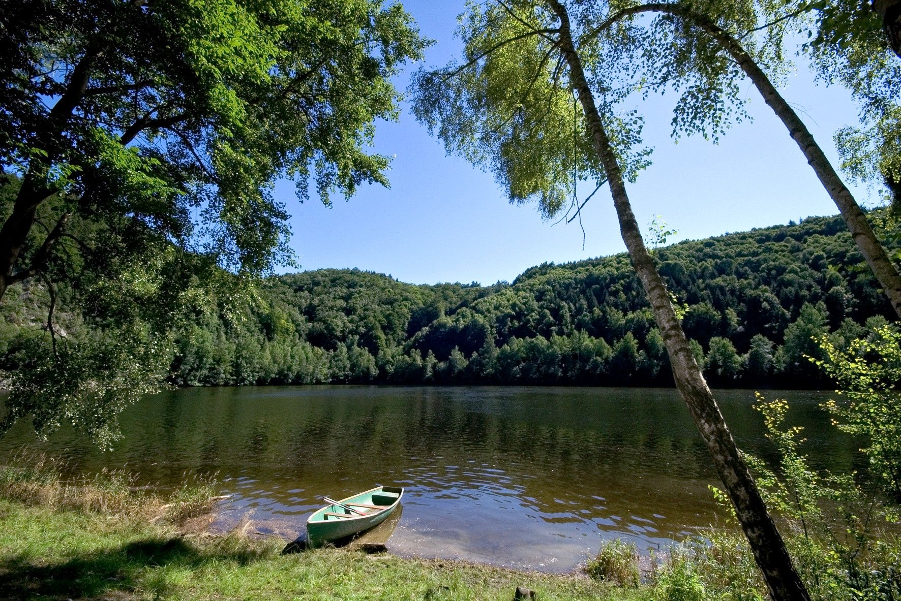 Auch zu Wasser kann der Stausee erkundet werden – bei einer kleinen Bootstour entdecken Sie die entlegenen Winkel des still daliegenden Gewässers mit Blick auf die erhabene einstige Burg Dobra. Den Bootsverleih finden Sie direkt beim Campingplatz Dobra. (Achtung: Am Campingplatz Dobra sind Hunde leider nicht erlaubt!)