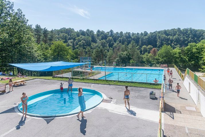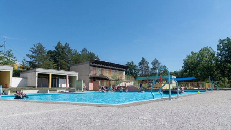 Das Terrassenbad verfügt über ein Becken "Nichtschwimmerbereich" und ein Babyplanschbecken, einen Beachvolleyballplatz und eine Kantine.