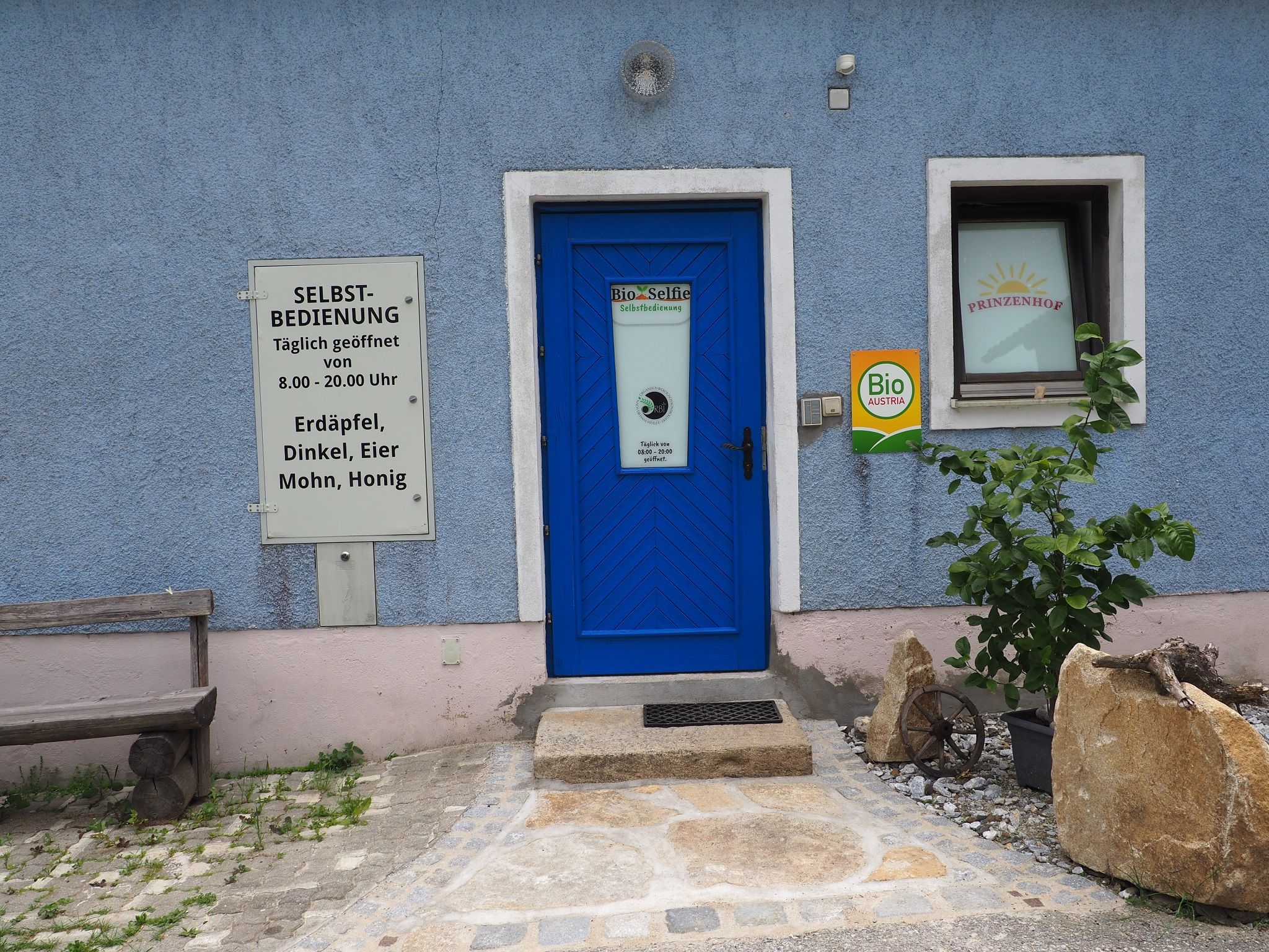 Seit Anfang 2018 zieht eine blitzblaue Tür die Aufmerksamkeit in Kottingnondorf auf sich – es ist dies unser kleiner Hofladen, der sich gleich gegenüber vom Prinzenhof befindet.