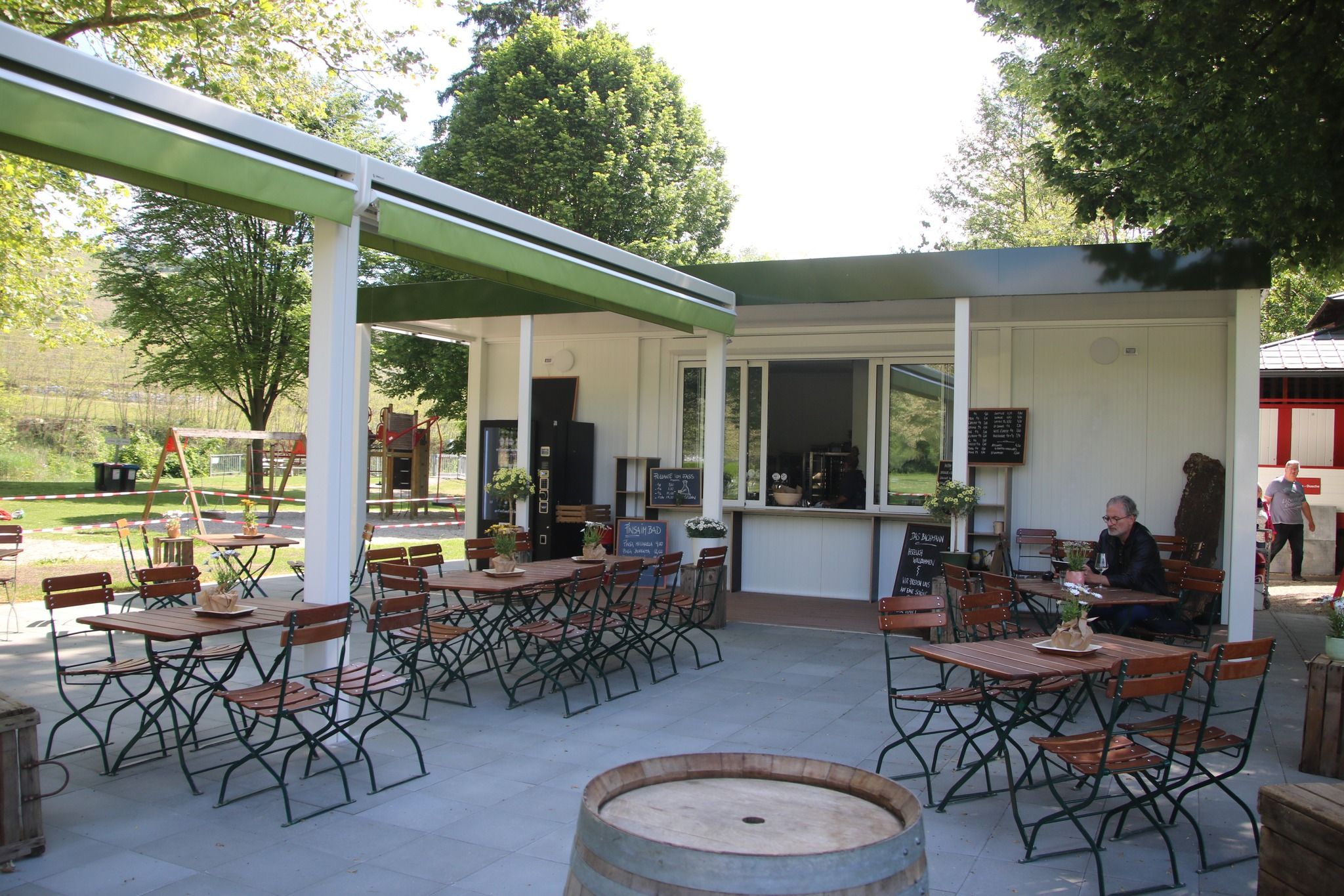 Das „Bachmann‘s“ – das neue Strandcafé in der Langenloiser Freizeitanlage am Kamp. Hier ein erster Blick auf das neue Gebäude des ehemaligen Badbuffets, das jetzt mit einem schönen Gastgarten extra punktet – und auf das Angebot für die Bade- und Freizeitgäste der neuen Gastronomie-Pächter Angelika Rauchberger und René Bachmann.