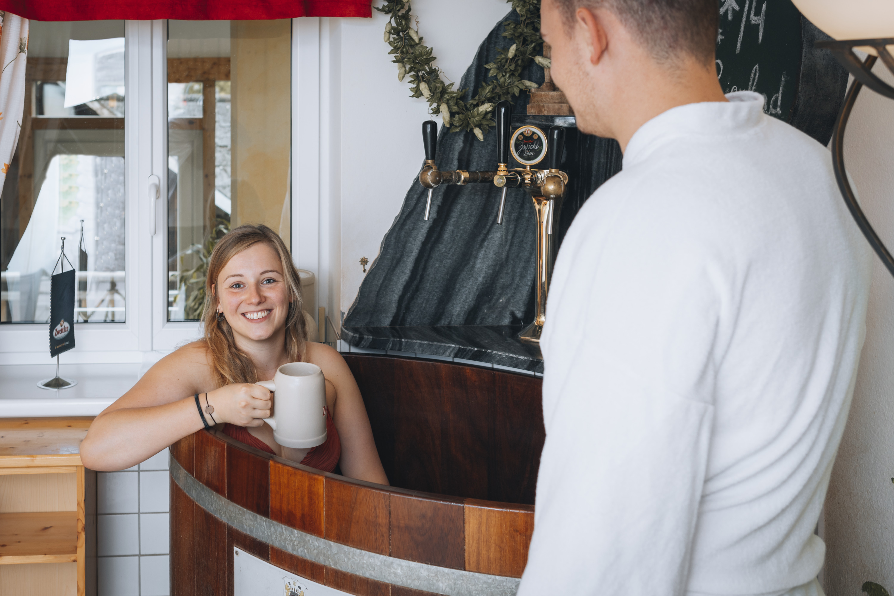 Neben Waldviertler Spezialitäten dreht sich im Gasthof zur Kirche alles rund ums Bier: Die regionalen Gerstensäfte munden, ebenso die Bier-Gerichte und -Menüs. Die Familie Schrammel geht aber noch einen Schritt weiter. In dem gemütlichen Wirtshaus wird obendrein ein Bier-Bad-Wochenende angeboten. Nach dem Sprung in die Bierwanne locken Wellness-Angebote mit Heubett oder Dampfkammer sowie Massagen. Bestens geschlafen wird in den neun zur Auswahl stehenden Themenzimmern. Mit frischer Energie können die Gäste diese aufstrebende Tourismusregion bestens erkunden. Beliebte Ausflugsziele sind das Waldviertler Mohndorf sowie die Whisky-Erlebniswelt Destillerie Haider.