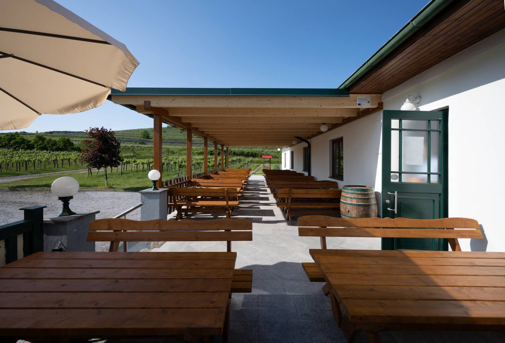 Gaisberg, Hasel, Wechselberg – das sind die klingenden Namen der besten Weinbergslagen in Straß im Straßertale. Von genau dort kommen auch die Weintrauben, aus denen Bernd Eisenbock seine guten Tropfen keltert. Die man dann jeweils Freitag, Samstag oder Sonntag im gemütlichen Heurigenlokal der Familie – oder noch besser: auf der neuen, sonnigen Terrasse mit Blick in die Weinberge – genießen kann. Und nicht nur das: Die selbstgemachten und natürlich der Saison angepassten Schmankerl wie auch die Mehlspeisen verleiten zum Schwelgen! Wer´s nicht ganz so fleischig mag: Einige vegetarische Speisen haben ihren Platz auf der Speisekarte, ebenso wie Happen, die speziell den Kleinen munden.