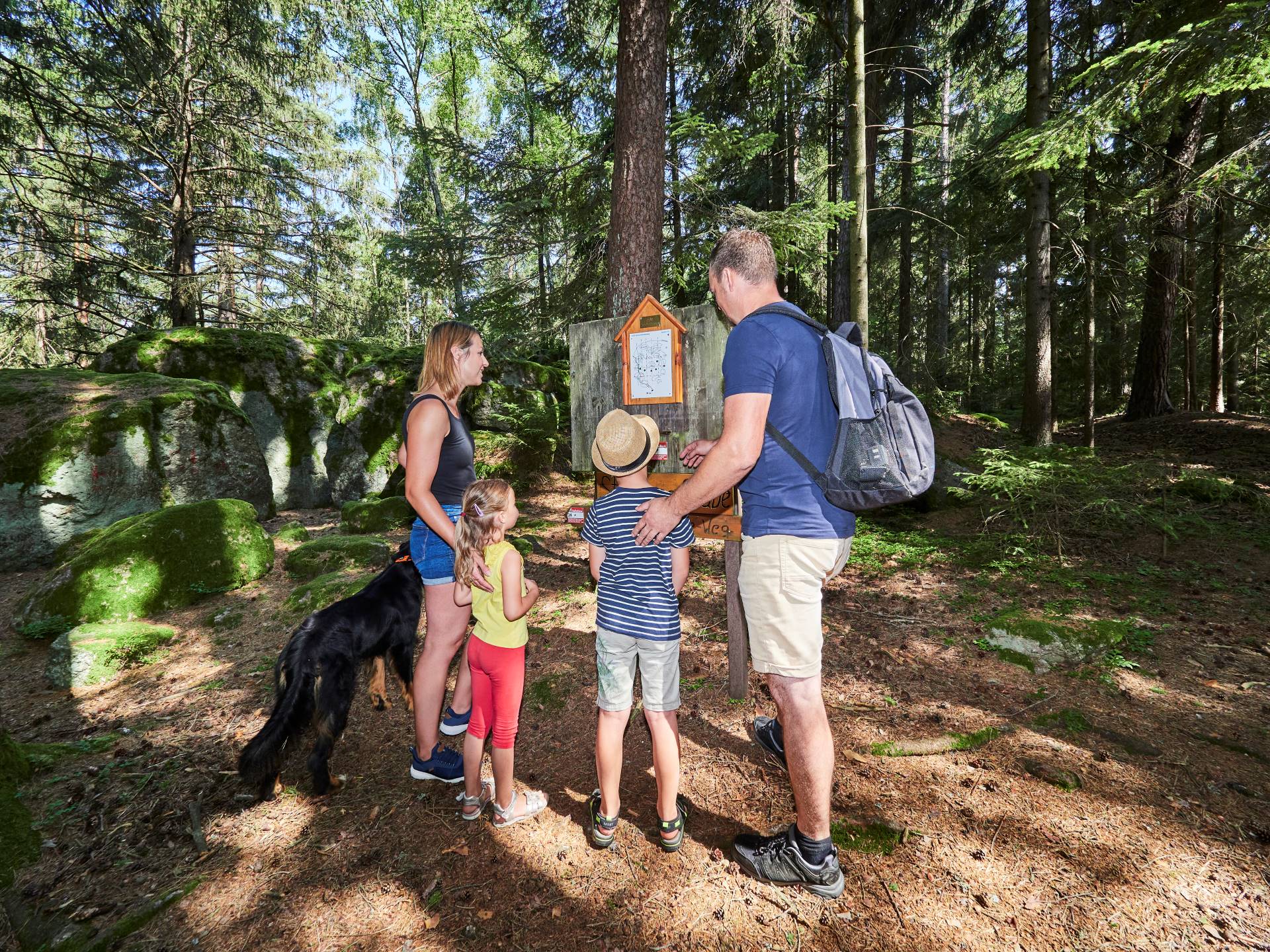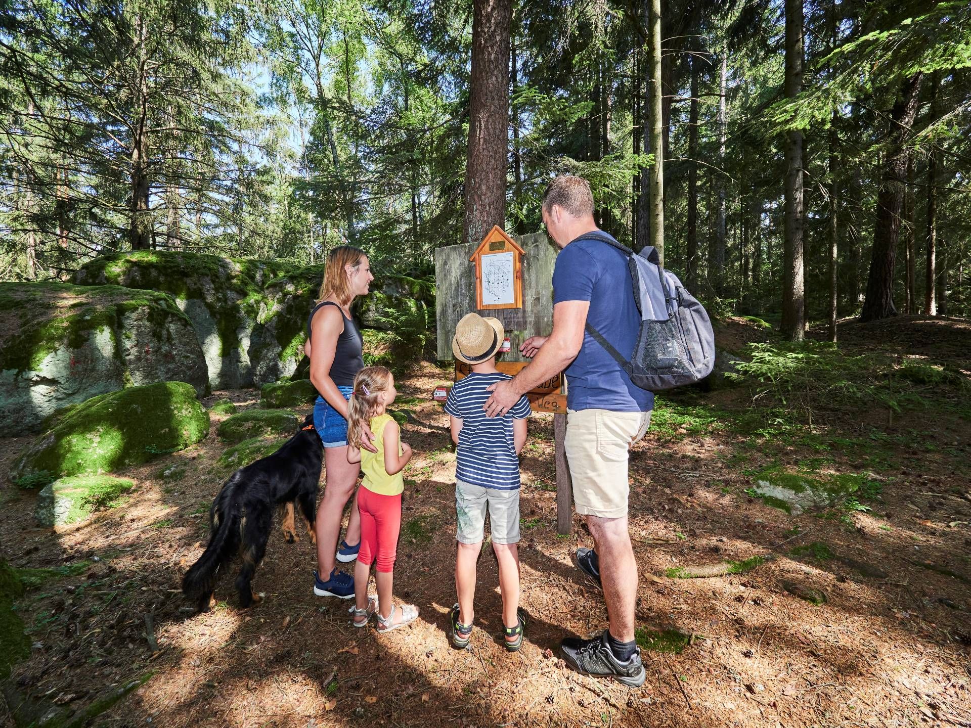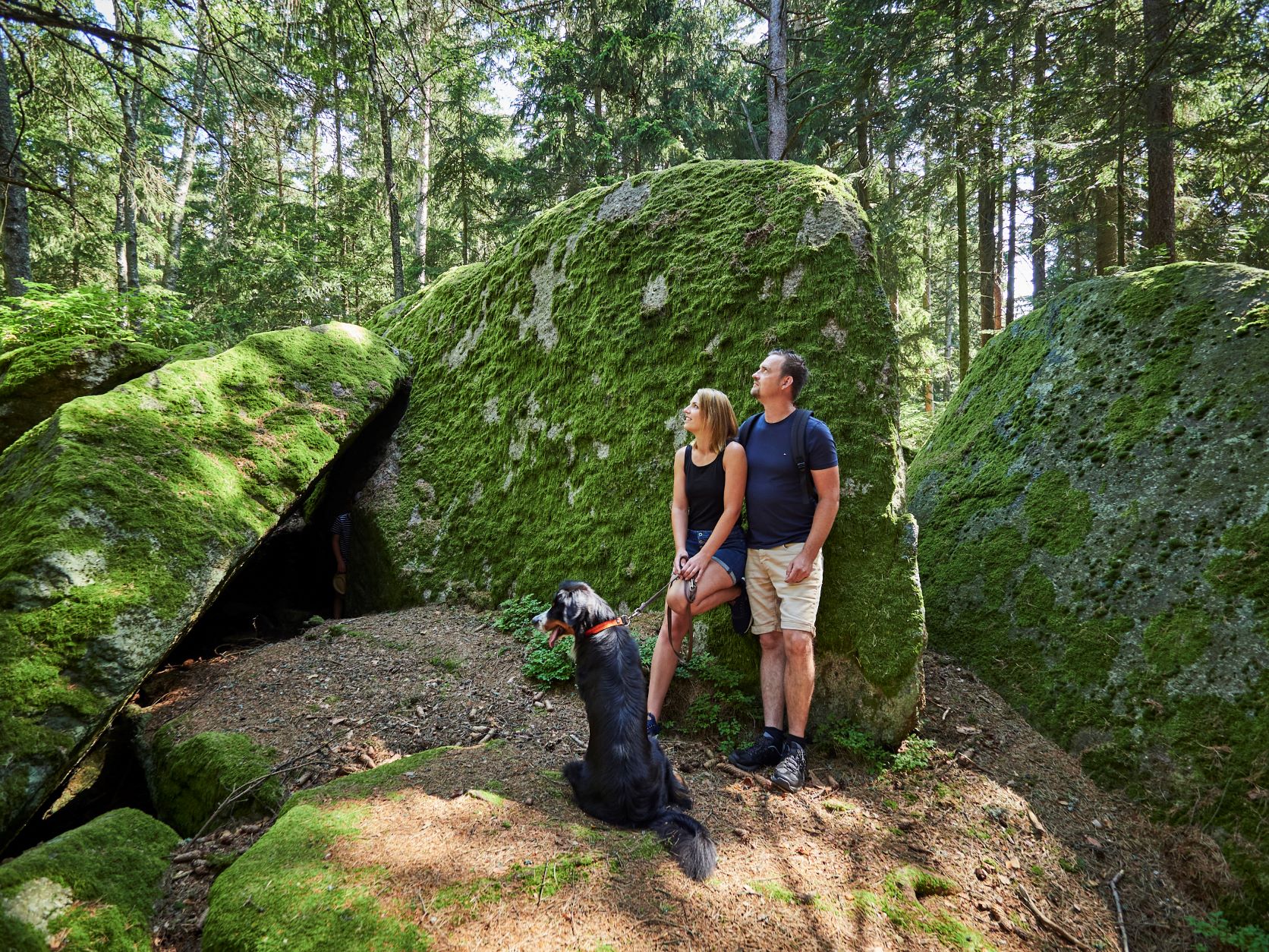 Wandern liegt auch in Großschönau im Trend. Die 6 gut erschlossenen Wanderwege führen vorbei an mächtigen Steinformationen, wie der „Steinernen Stube“ oder dem „Rabenloch“ oder an einer 36m hohen „Naturdenkmal“-geschützten Riesenfichte. Die Natur intensiv wahrnehmen und Kraft tanken kann man auch beim Waldbaden im SternzeichenPark mit seinen mächtigen Holzskulpturen, einem der 5 Energie-Erlebnisse in Großschönau.