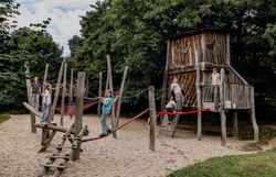 - Abenteuerspielplatz mit Klettermöglichkeiten und Wasser-Sandmulden zum kreativen Gestalten