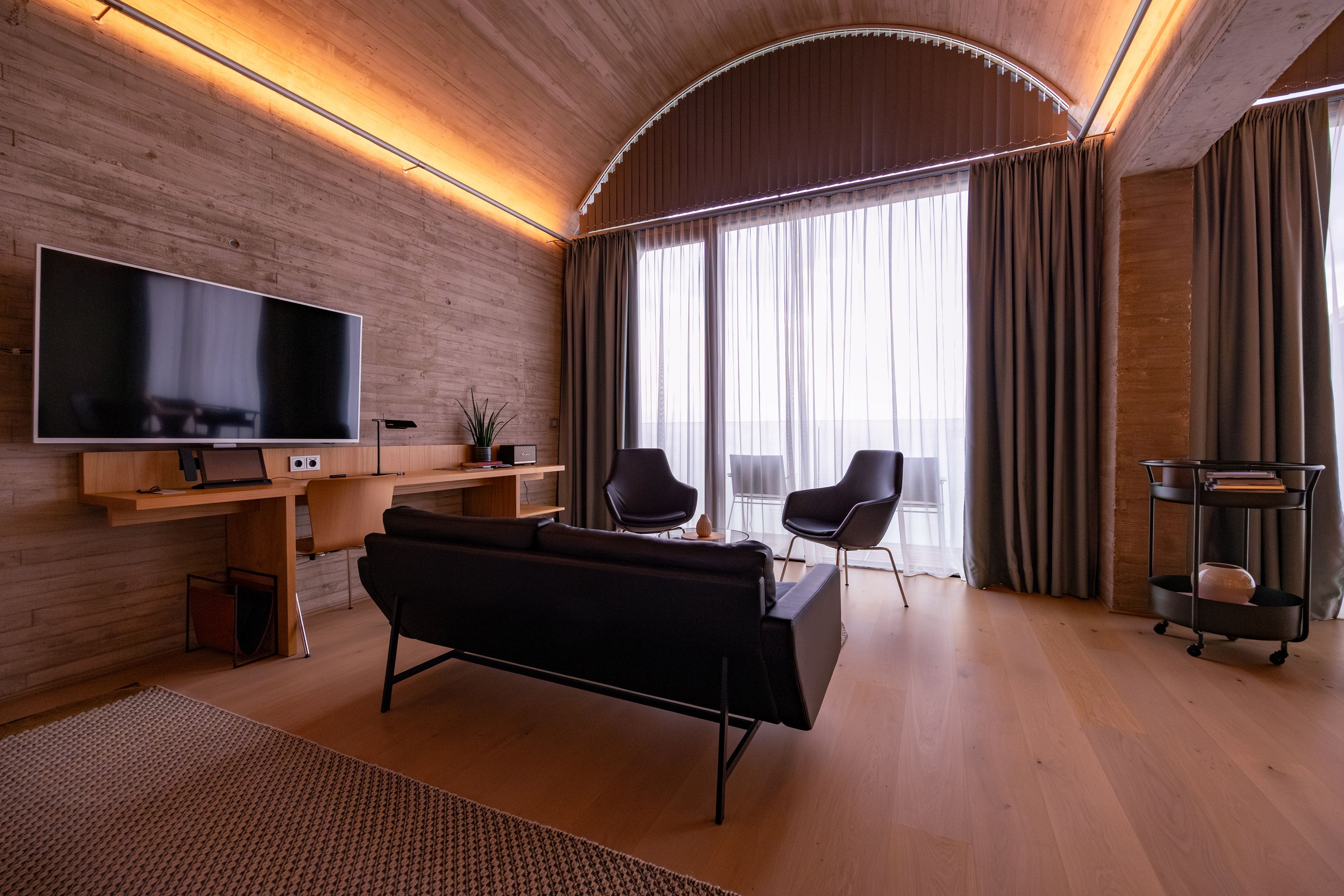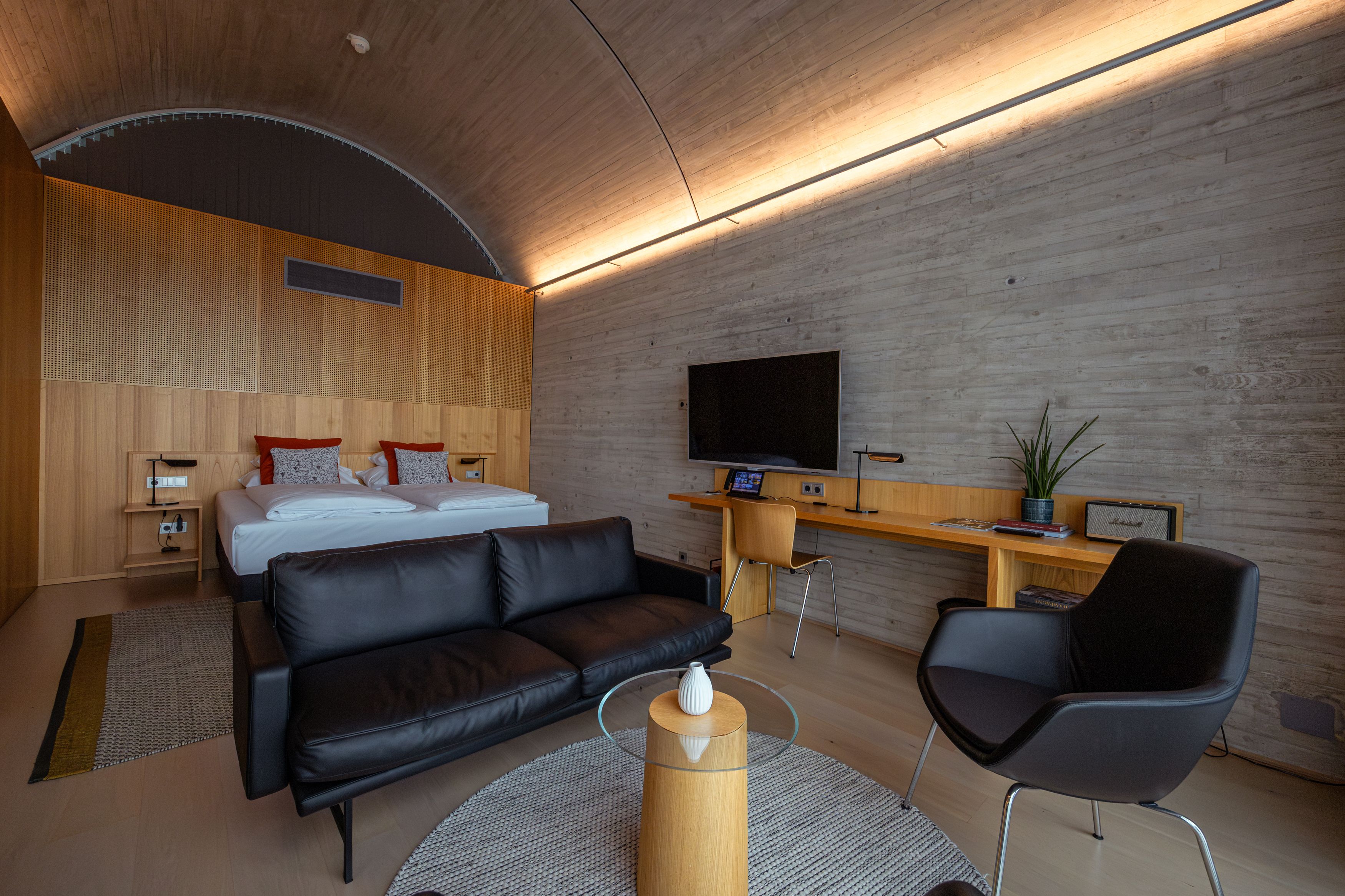 Das vom US-Stararchitekten Steven Holl entworfene Gebäude vereint modernen Lifestyle mit dem Charme der traditionellen Weingegend. Alle Zimmerkategorien bieten einen herrlichen Ausblick und eine gemütliche Ausstattung. Und wer sich beim Fahrrad.fahren, Wandern und Gustieren auf dem Wein.weg verausgabt hat, lässt sich anschließend im Restaurant Vineyard kulinarisch verwöhnen oder genießt einen Drink an der Holl Bar.  Für Entspannung sorgten der Spa-Bereich mit Massagen, Beauty-Behandlungen und Sauna. Ein Sprung in den Naturbadeteich oder den beheizten Outdoor-Pool ist ohnehin immer eine wunderbare Idee.