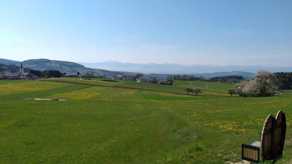 Schöne Wanderung durch Wald und Wiesen mit herrlichem Alpenblick beim Wasserhochbehälter.