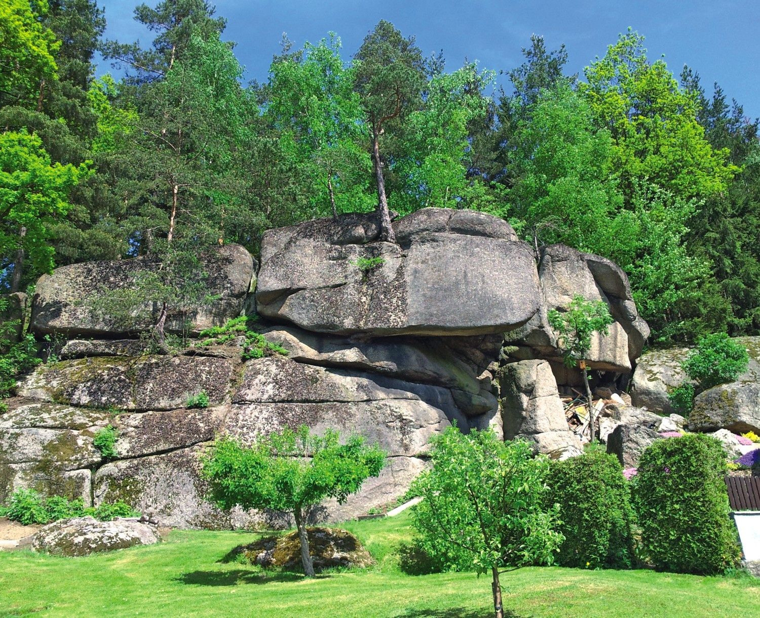 Unmittelbar neben dem Gemeindeamt gehst du den Kirchenberg hinunter bis zur Pürbacher Straße, überquerst diese und wanderst links weiter bis zum Gasthaus Gruber. Dort biegst du rechts in die Schremser Straße ab, gehst über die Braunaubachbrücke und wechselst unmittelbar danach links in den Blockheideweg. Dann kommst du an der Hubertussäule vorbeiund biegst in die 2. Gasse rechts ein. Danach gelangst du bis zur Bundesstraße, wo du nach rechts abbiegst und nach ca. 100 m links unter der Straße hindurch gehst. Nach der Unterführung biegst du wieder nach links ab. Folge nun dem Weg in gerader Richtung entlang der Bundesstraße. Nach ca. 400 m erreichst du abermals den Braunaubach und folgst dem Weg halbrechts. Nun geht es vorbei an zwei kleinen Fischteichen zwischen Feldern und Wiesen bis zur Hochspannungsleitung. Direkt unter der Leitung geht der Weg links weg zum Waldrand. Du folgst dem nach halbrechtsverlaufenden Weg entlang des Waldes bis zur gekennzeichneten Wegkreuzung „Fa. Backhausen, Märchengrotte“. Hier zweigst du links weg, gehst durch den Hochwald und kommst anschließend durch einen mystischen Märchenwald bis zum Braunaubach.