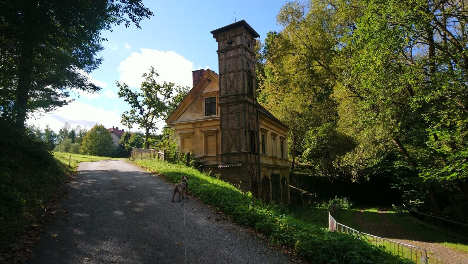 Folge nun rechts dem Bach entlang bis zur Brücke. Hier befindet sich die Textilfabrik Backhausen, die hier seit 1870 hochwertige Möbel- und Dekorstoffe herstellt. Gegenüber der Brücke kannst du eine Märchengrotte in einer Steinhöhle besichtigen. Nach der Brücke gehst du rechts den Berg - vorbei am alten Fabriksfeuerwehrhaus - hinauf. Vor dem zweistöckigen Wohnhaus geht die Route links weg in Richtung Bundesstraße, an einem Bildstock vorbei. Folge links dem Begleitweg, vorbei an der Fa. Silbernagel und der Kläranlage bis zur Unterführung. Du musst nun unter der Bundesstraße durch, rechts weg und vorbei am Heurigenlokal. Kurz nach dem Heurigenlokal biegst du links in die Friedhofstraße ein. Der Weg führt dich vorbei am Gemeindeumweltverband(GUV)-Gmünd und am Friedhof. Nun gehst du bei der nächsten großen Wegkreuzung rechts am Feuerwehrhaus vorbei (rechterhand die 1903 erbaute Volksschule), den Berg hinauf in Richtung Kirche.