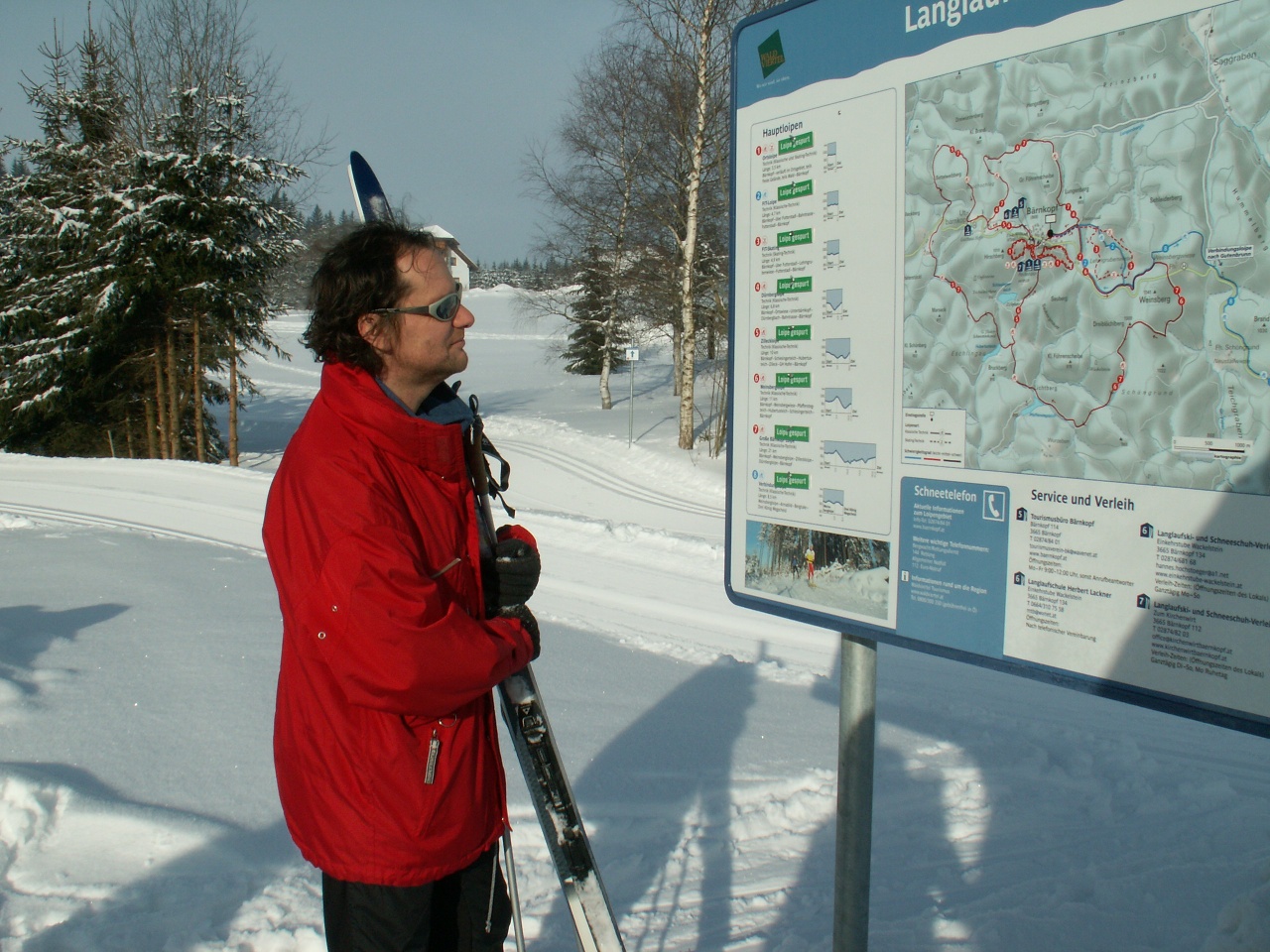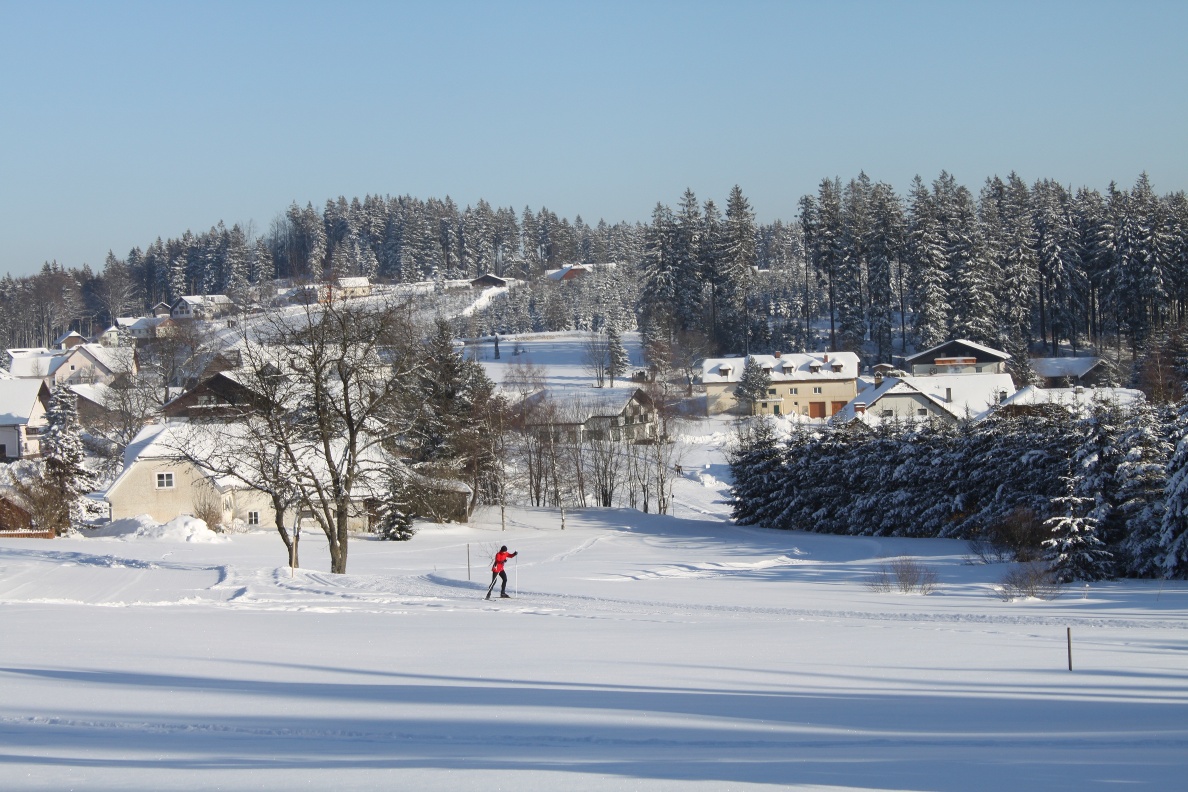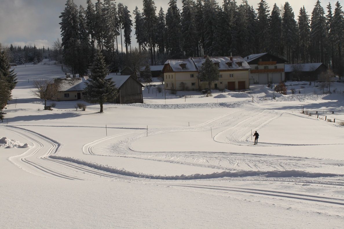 Schwierigkeit rot (mittel), Länge 4 km, Höhendifferenz 50 m, Gesamtanstiege 90 m Streckenführung verläuft im Ortsgebiet, teils freies Gelände, teils Wald, sonnig. Besonderheit: Diese Loipe ist mit einer Flutlichtanlage ausgestattet