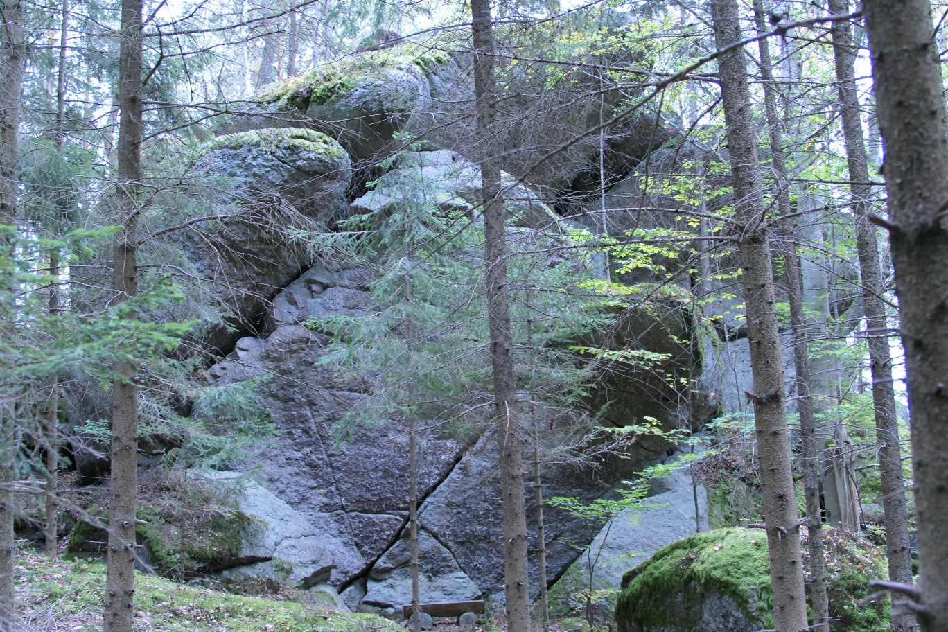 Der Teufelsmauerweg führt dich vorbei am 1. Europäischen Hunde-Moorbadeteich, wo das Moorwasser über eine Holzrinne fließend, den in Schwimmer- und Nichtschwimmer unterteilten Badeteich füllt und aufgrund der ruhigen Atmosphäre ein beliebter Ausflugsplatz für Hund und Herrchen bzw. Frauchen ist. Nach kurzer Wanderung kommst du zur sogenannten "Teufelsmauer".