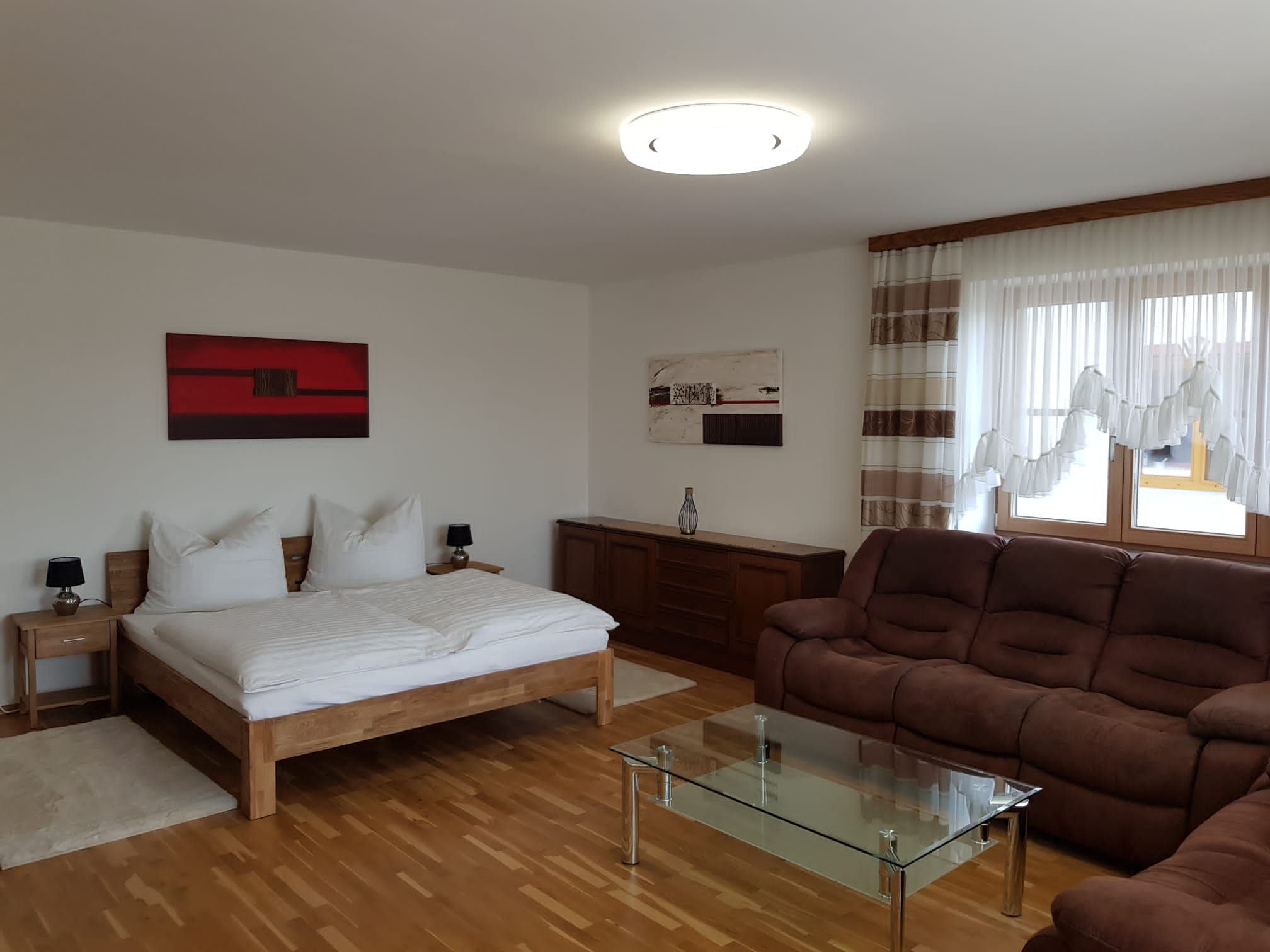 Doppelbett, Flachbildfernseher, Bettwäsche + Bezug, zwei Zimmer davon mit Sofa, 2x Babybett (auf Wunsch)