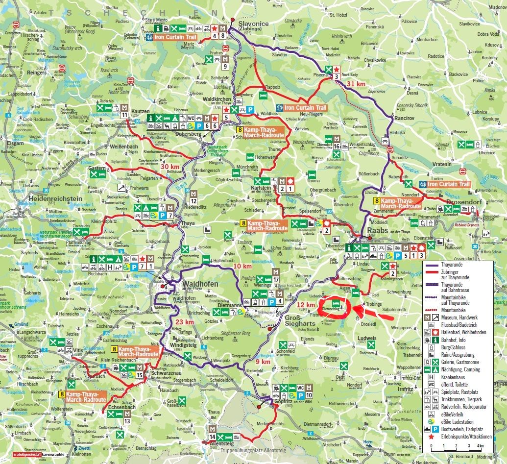Diemschlag liegt direkt am "Seebsbach Radweg", der an den Radweg "Thayarunde" anschließt.