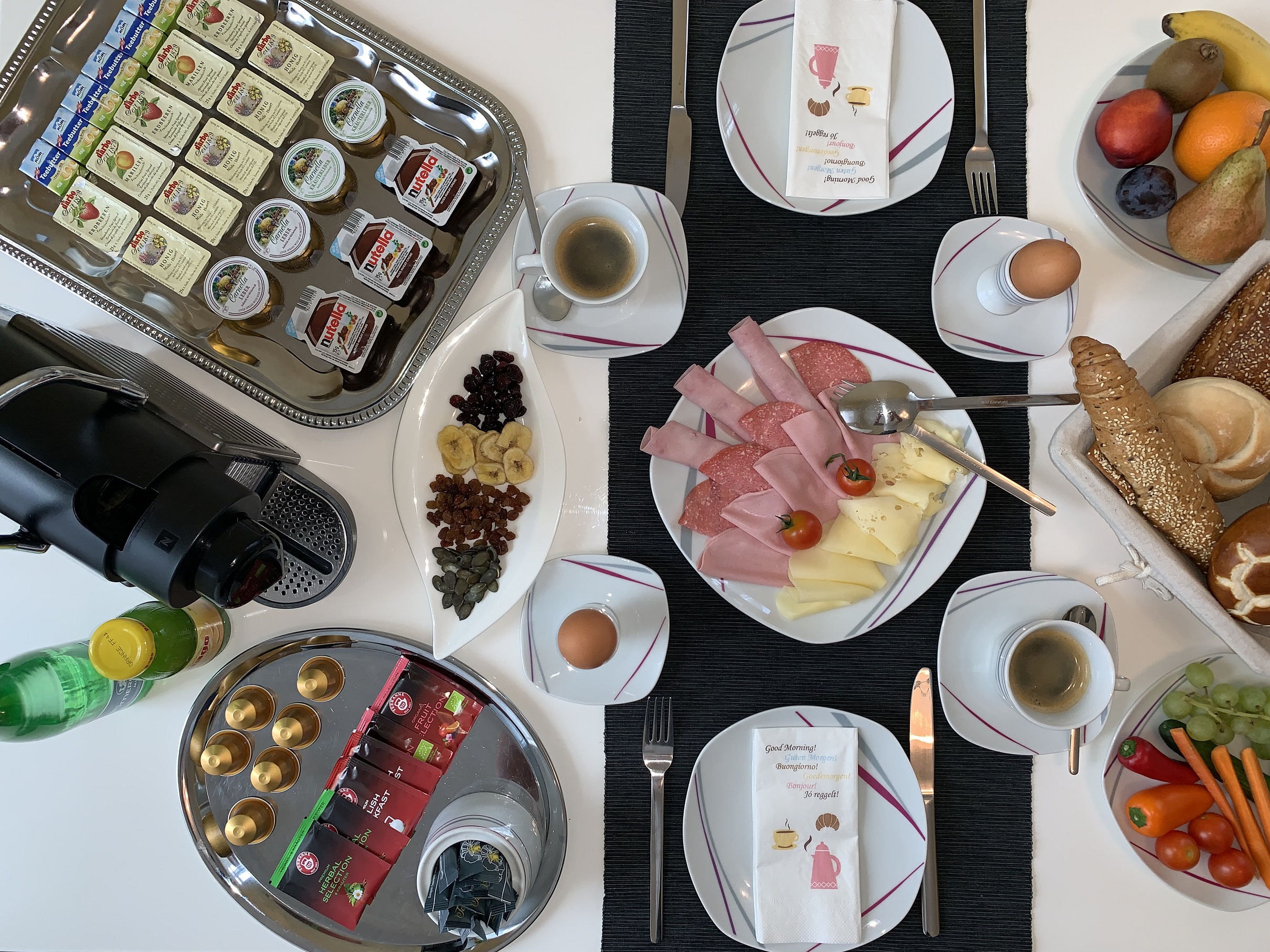 Frühstück wird im Apartment zur Verfügung gestellt; die Gäste bedienen sich am separaten Buffet mit frischem Frühstücksgebäck, Müsli, Cerealien und Obst. Im Garten stehen Sitz- und Liegegelegenheiten zur Verfügung, kostenlose Leihfahrräder, hauseigener Gäste-Parkplatz inklusive, 24h-Check-In-Terminal. Gäste der Residenz Royal erhalten exklusiv 20% Ermäßigung auf den Tageseintritt für das Sole-Felsen-Bad (Sole-Felsenwelt).
