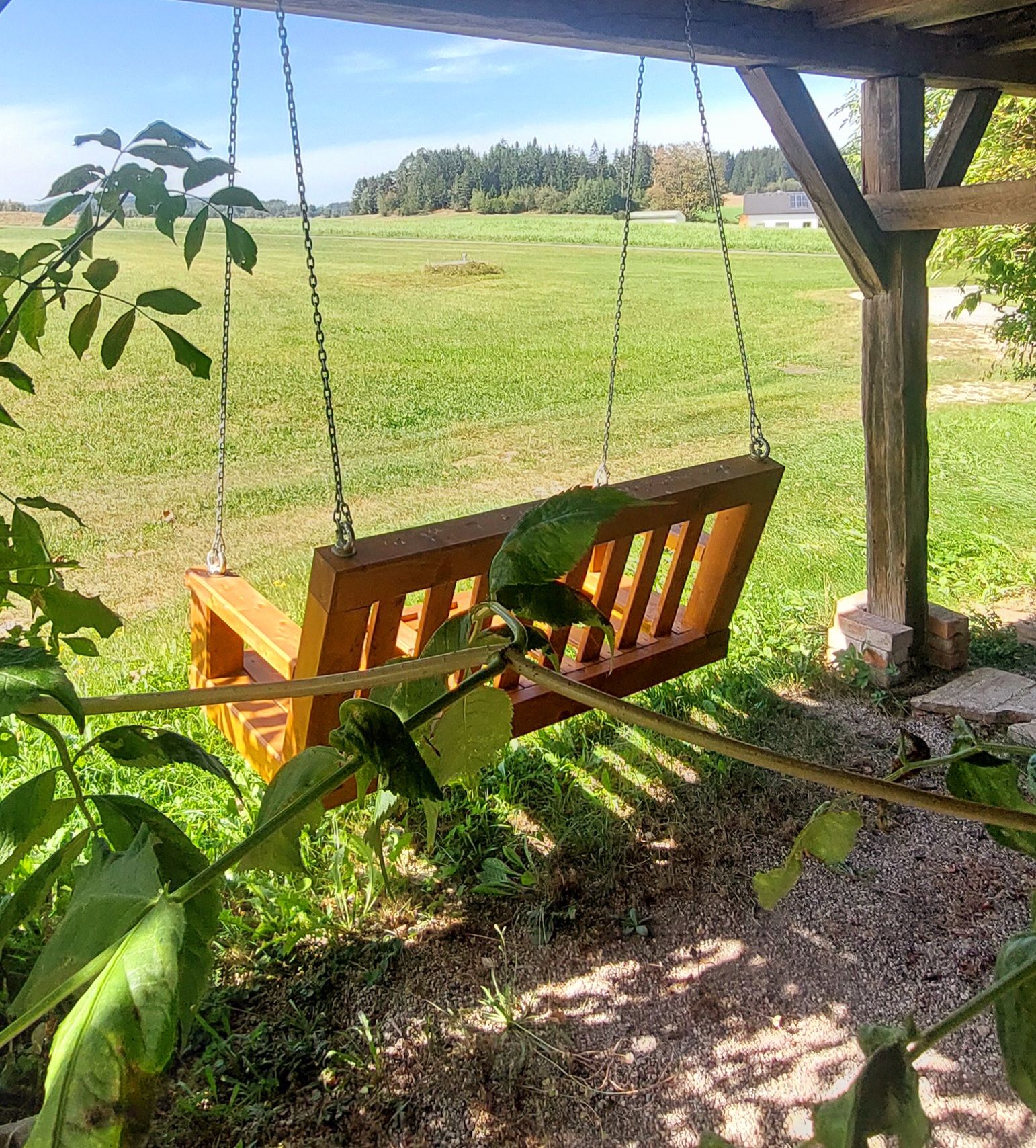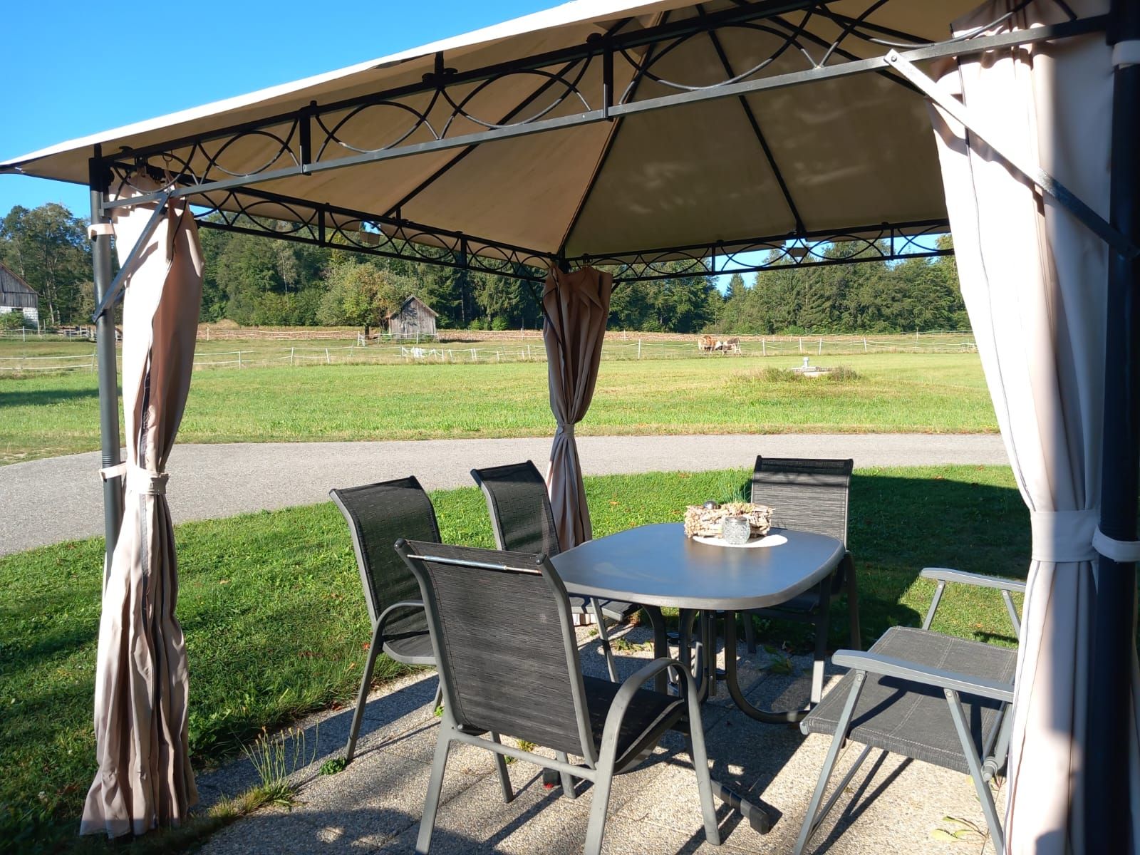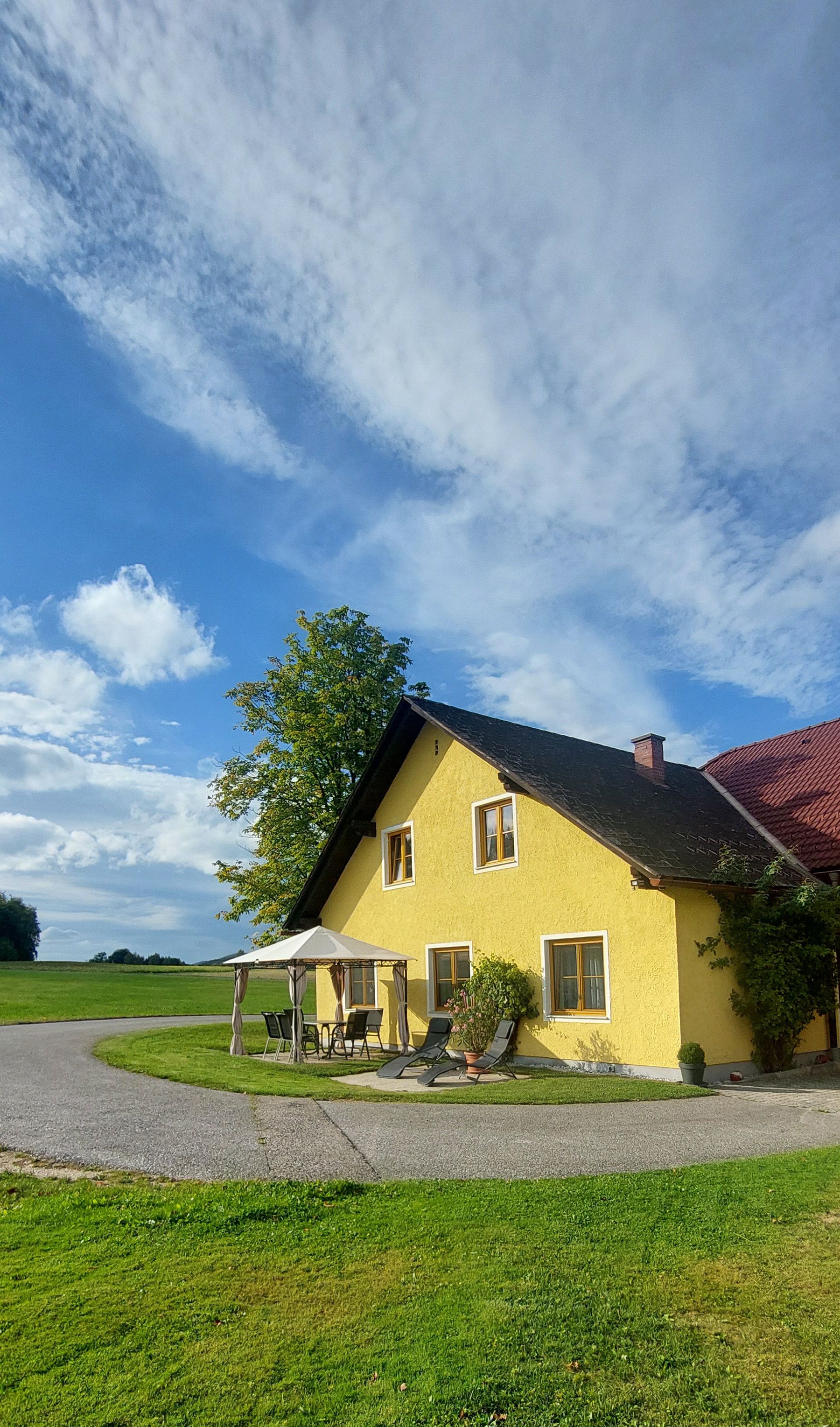 Garten mit Pavillon und Liegefläche, sowie viel Grün rund ums Haus laden zum Entspannen und Träumen ein.