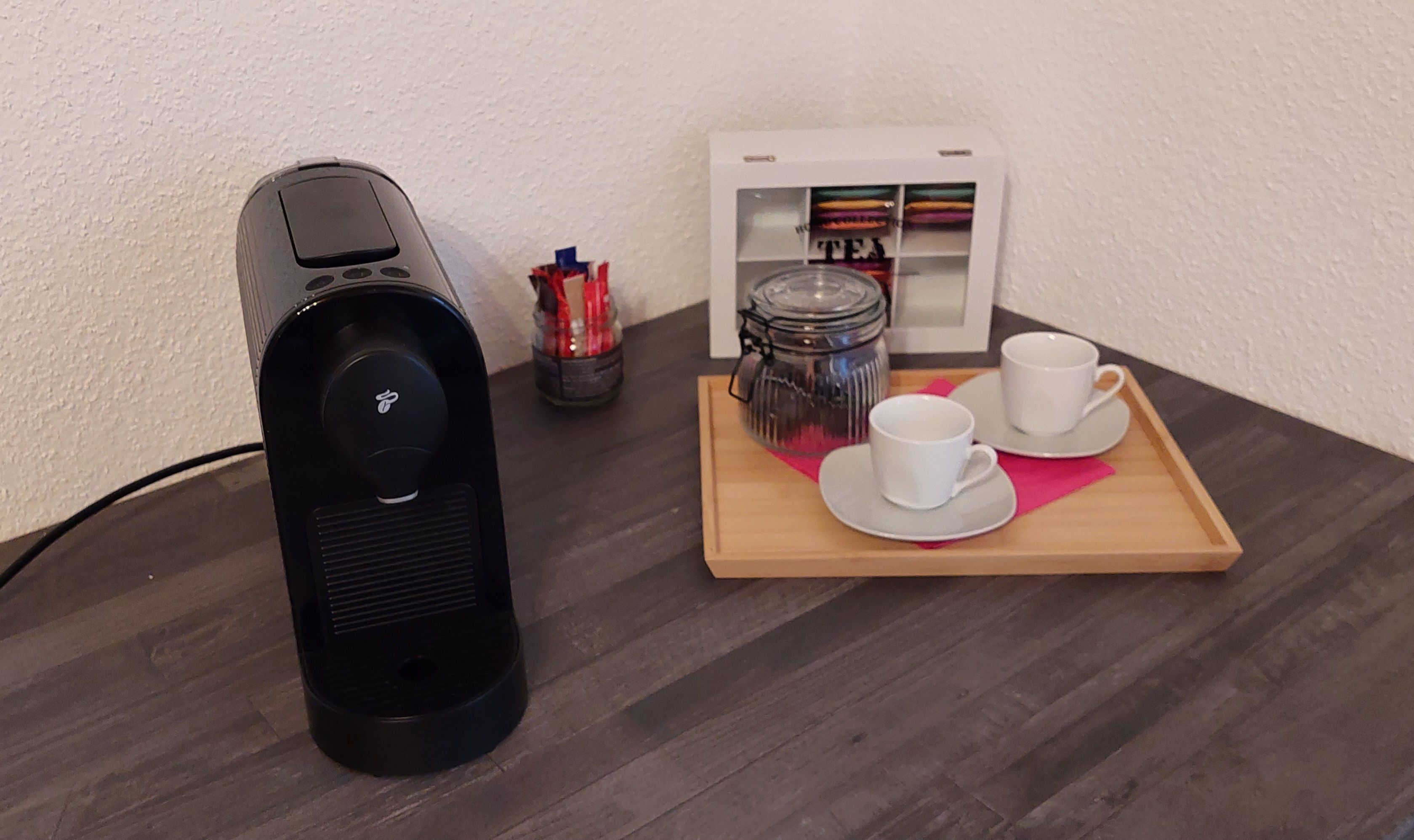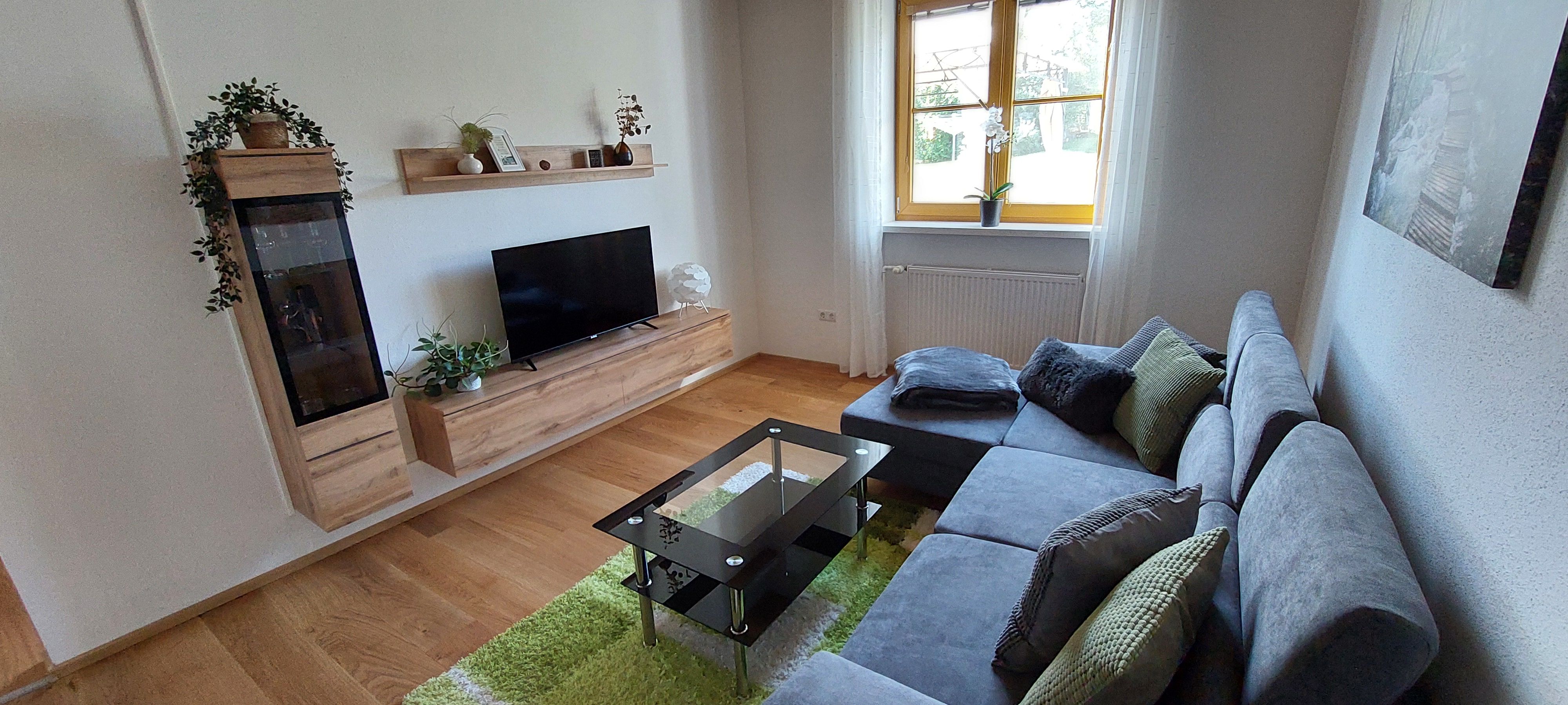Mit eigenem Eingang, gemütlichem Schlafzimmer mit Möglichkeit eines Zusatzbettes/Gitterbettes, Wohnzimmer mit ausziehbarer Couch, Leseecke, Flachbild-TV, freiem WLAN und geräumiger und gut ausgestatteter Küche.