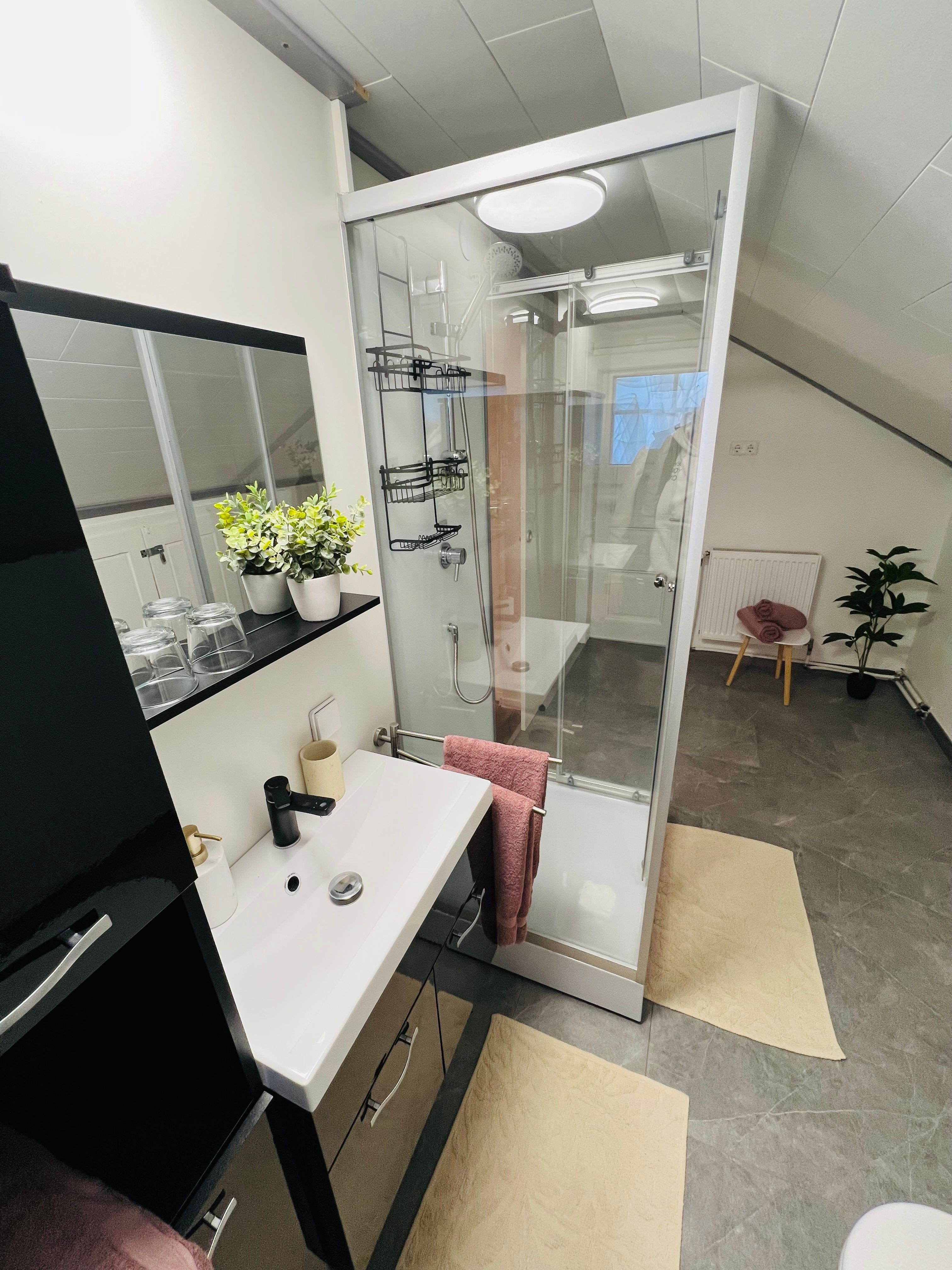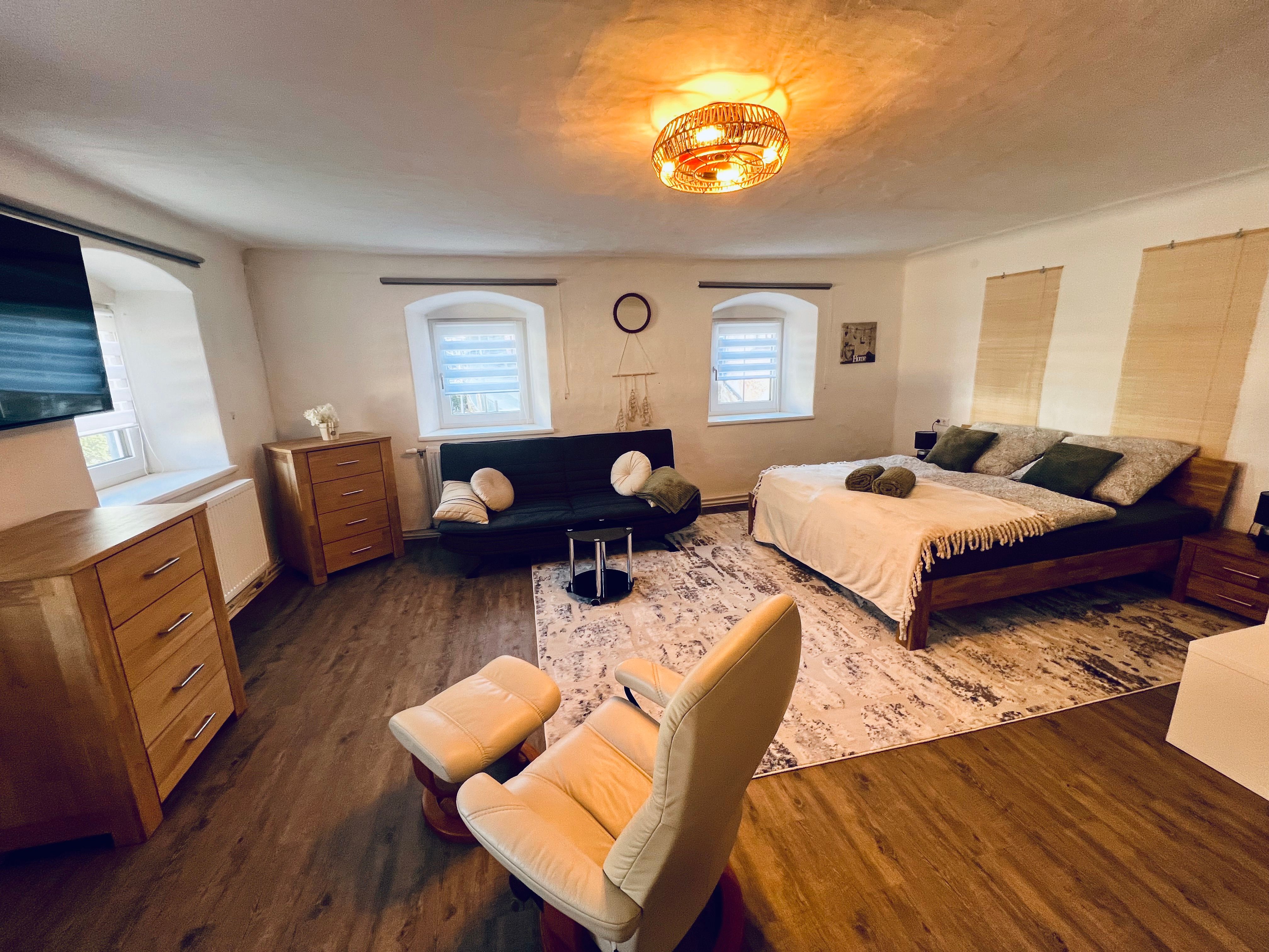 1. Appartement (35m2) im EG für 2-4 Personen, Doppelbett (160cm), Schlafsofa (140cm) mit Bettwäsche, Küche komplett ausgestattet, Badezimmer mit WC inkl. Badetücher, Föhn etc.