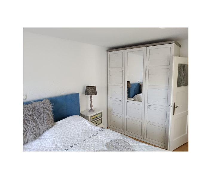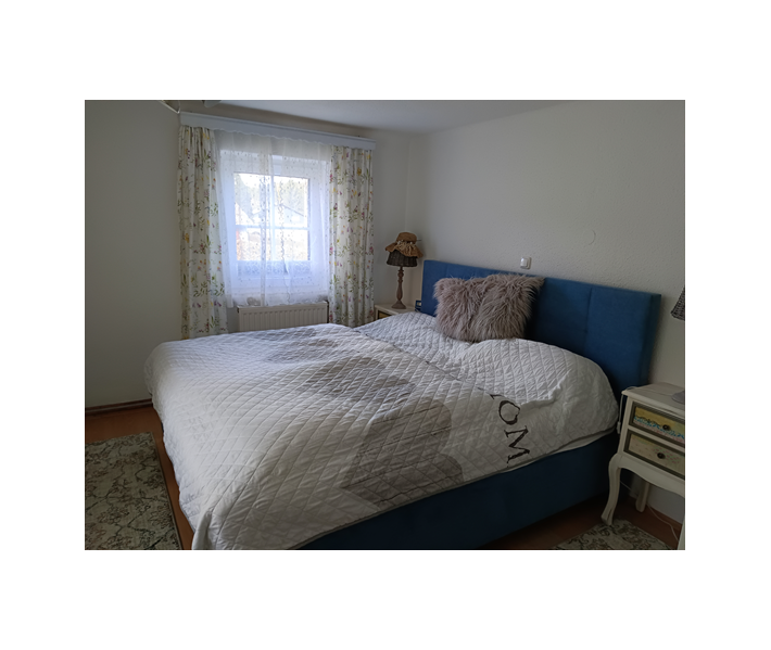 Schlafzimmer: Doppelbett (Boxspringbett) inkl. Bettwäsche, Nachtkästchen, Kommode und Kasten