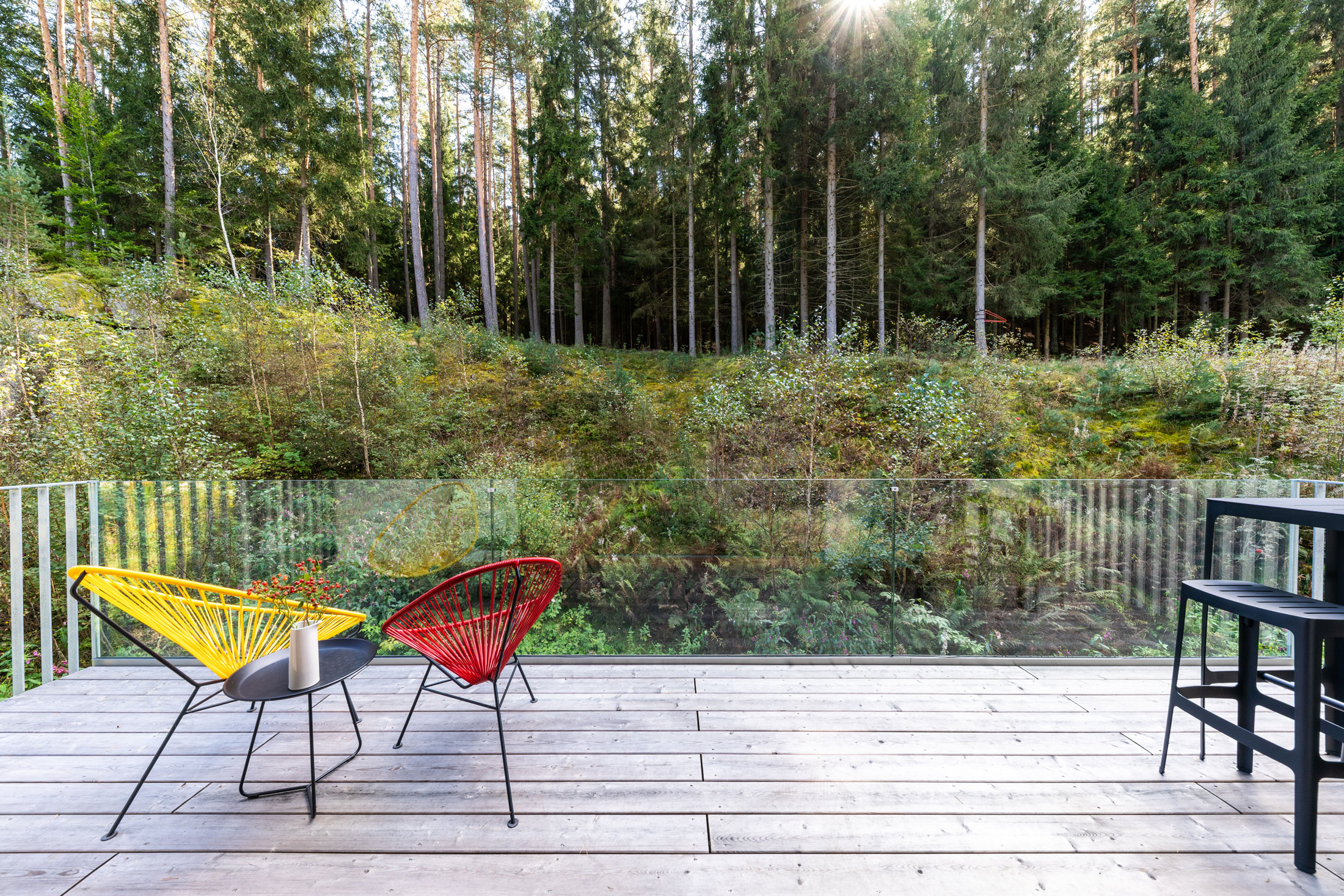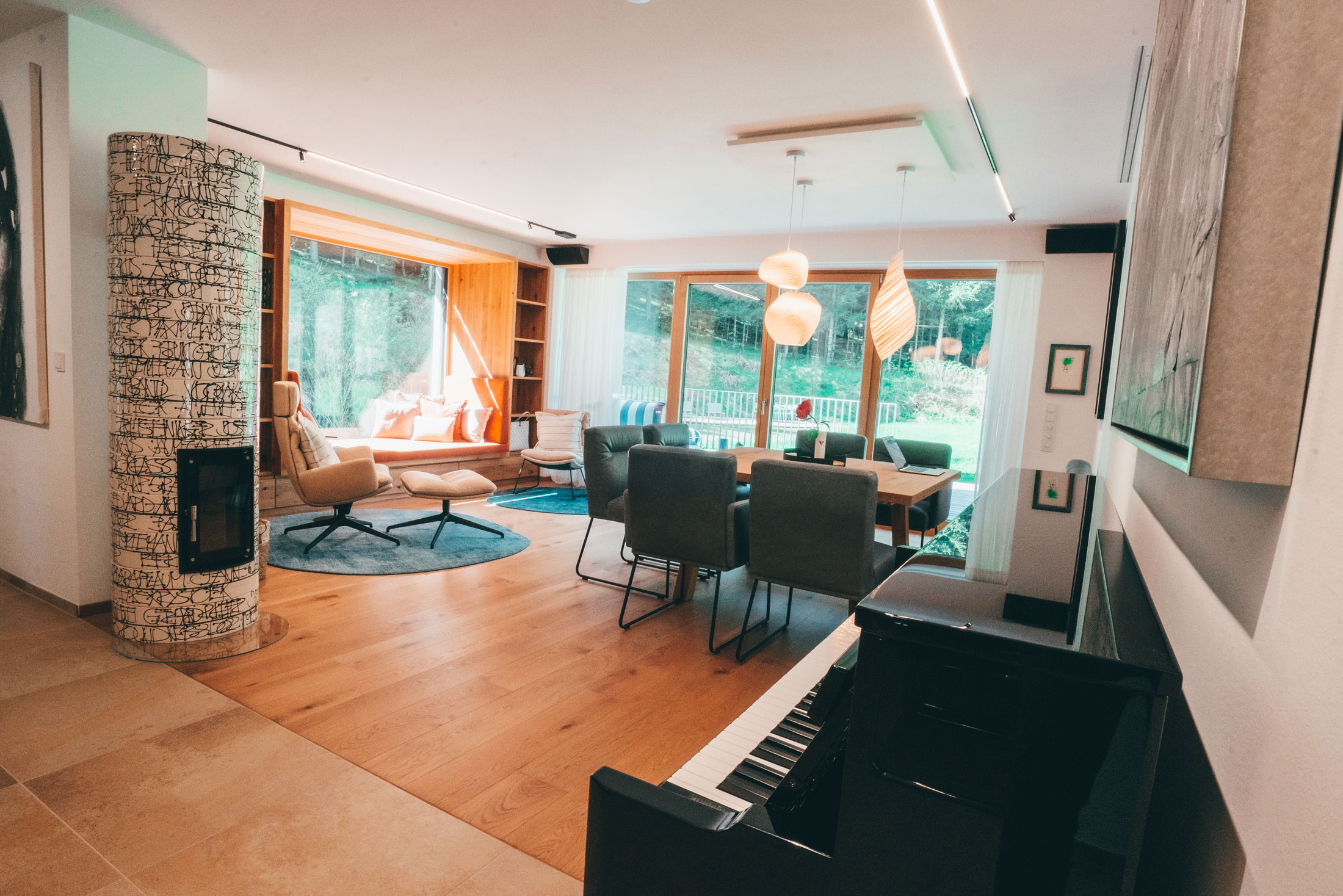 Wählen Sie zwischen zwei Apartments. 140 oder 90 Quadratmeter groß. Modern und voll ausgestattet, mit individuellen Möbeln und Kunst aus der Privatsammlung. Sie können Apartment 01 und Apartment 02 einzeln buchen oder gemeinsam. Zu beiden gehören großzügige private Terrassen und ein Zugang zum gemeinsamen Garten. Ein Klavier für die Muße, eine Feuerstelle zum Grillen, eine erfrischende Dusche mitten im Uttissenbach, der durch das Gartenareal fließt oder ein Buch in der Hängematte zwischen den Waldbäumen lesen…. Im Waldrefugium ist Entspannung garantiert.