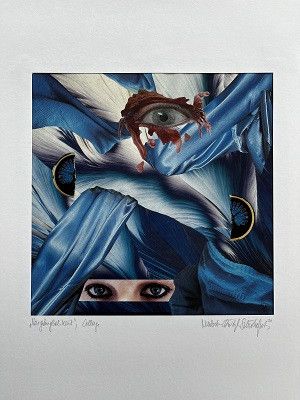 Die Collage-Technik bietet mir die Möglichkeit, konkrete Bildinhalte in einen freien Gestaltungsprozess einzubinden. Teilweise Übermalungen mit Farbstiften, Aquarell- und Gouache-Farben ergänzen und perfektionieren den optischen Bild-eindruck. In einigen Blättern unterstützen auch partielle Monotypie-Überdrucke die angestrebte Bildwirkung.