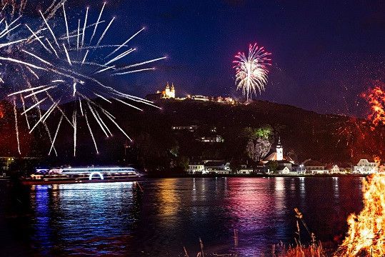 Neben einem grandiosen Feuerwerk in Maria Taferl können Sie das funkelnden Lichtermeer entlang des bezaubernden Flusstales bestaunen.