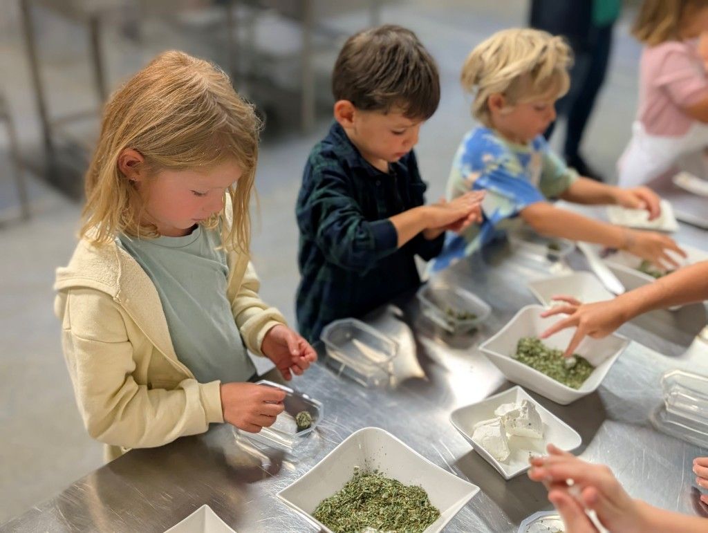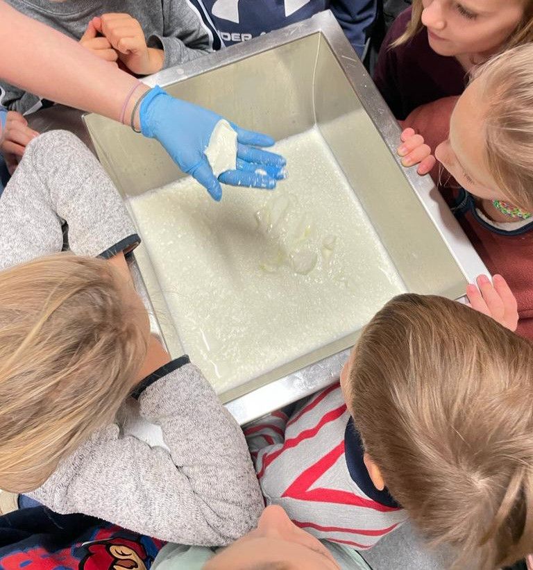 Kinder machen Käse in der Mini-Käserei