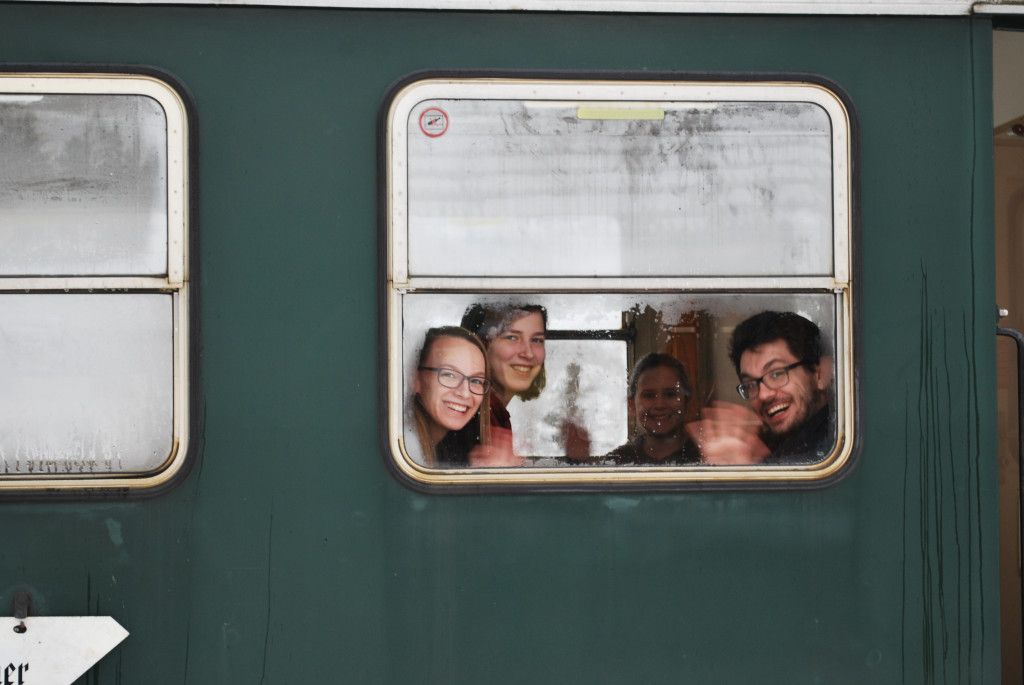 im weihnachtlich dekorierten Zug für wohltuende Erwärmung. Am Bahnhof Altnagelberg ist Zeit für ein Erinnerungsfoto vor der historischen Diesellokomotive und zum Aufwärmen am Lagerfeuer.