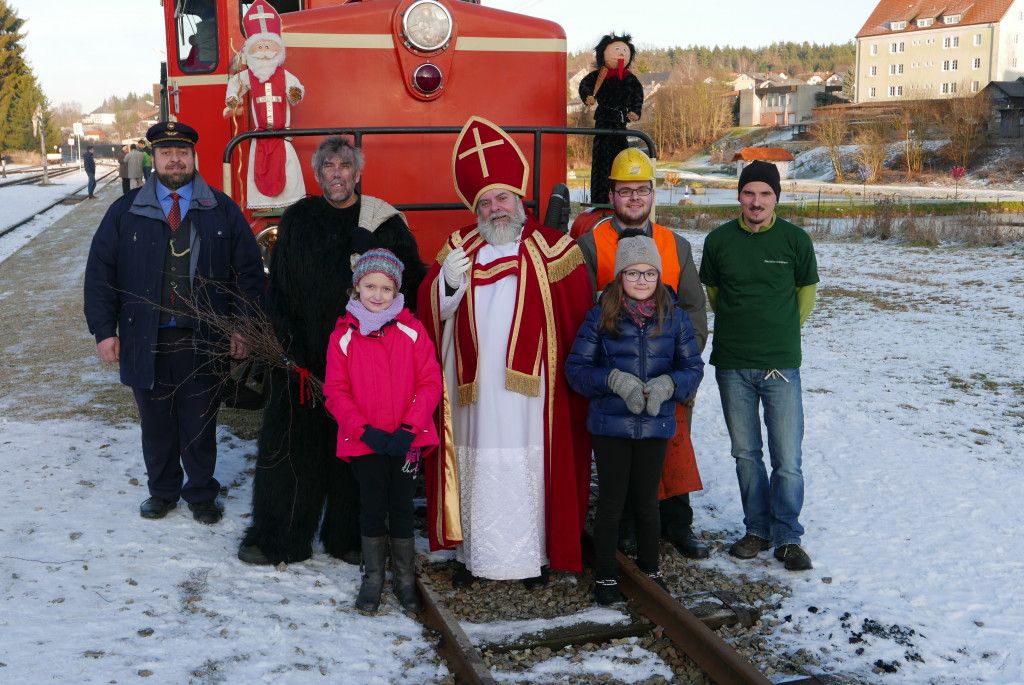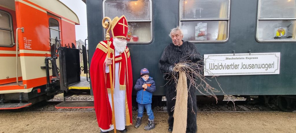 in den Zug ein und verteilen Geschenke. Glühwein, Kinderpunsch und Würstel sorgen für wohltuende Erwärmung.